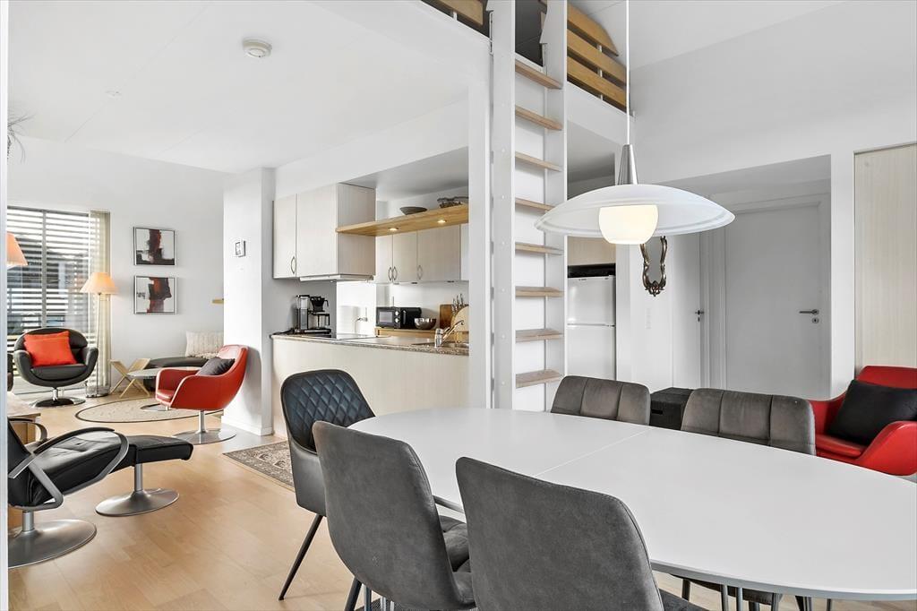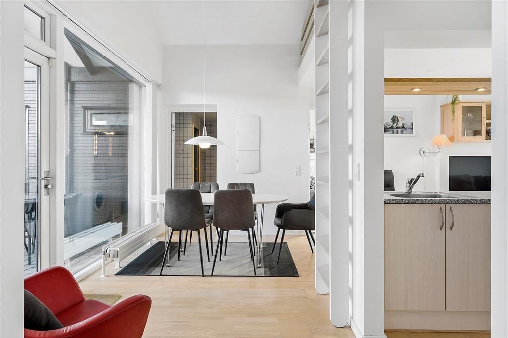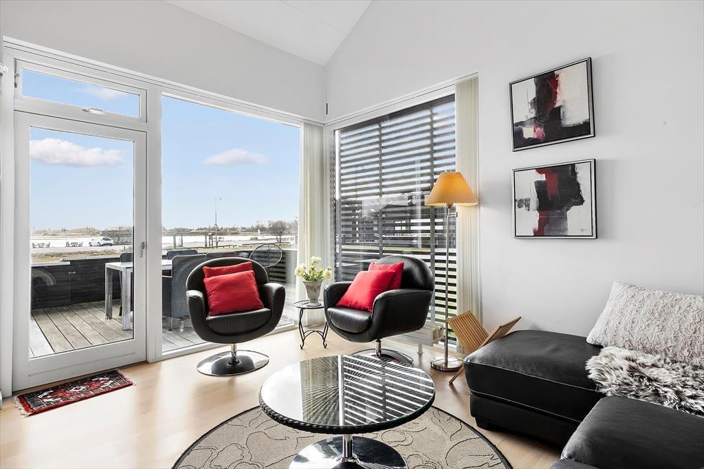 Rammerne er lyse og lette, og indretningen er moderne i det 111 m2 store sommerhus, der ligger i første parket til havnen, så I kan se lige ud på vandet og de vuggende sejlbåde. Det sociale samlingspunkt er opholdsrummet, hvor et veludstyret køkken er forenet med en dejlig stue. Her er der indbygningspejs, fladskærms-tv med Chromecast og komfortabelt møblement, der bare indbyder til, at I sætter jer godt tilrette og glemmer hverdagens rutiner for en stund. En stige fører op til en hems, og derudover består husets planløsning af tre gode soveværelser og to badeværelser, hvoraf det største er udstyret med både spabad og sauna.