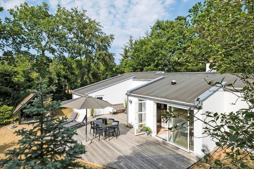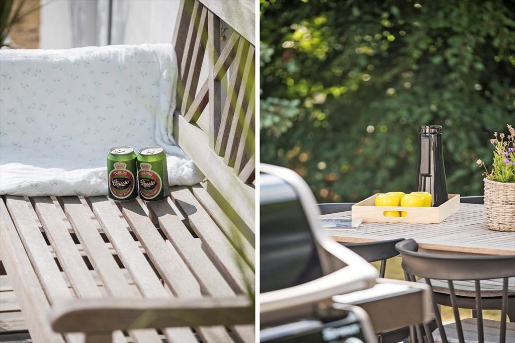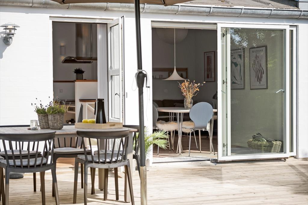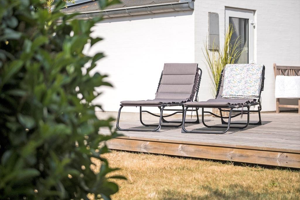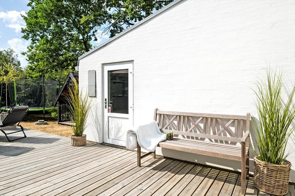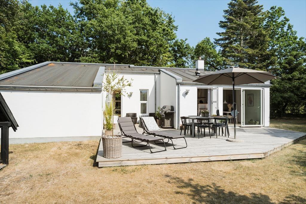 Vest for sommerhuset breder en lækker træterrasse sig. Den er stor, solrig og udstyret med havemøbler af god kvalitet – og den har også en grill, så det er muligt at tilberede sommerens måltider i det fri. Det er selvfølgelig også oplagt at indtage maden herude i det grønne, og måske bliver I endda hængende i de fredelige og ugenrede omgivelser, indtil det er tid til at sige godnat.