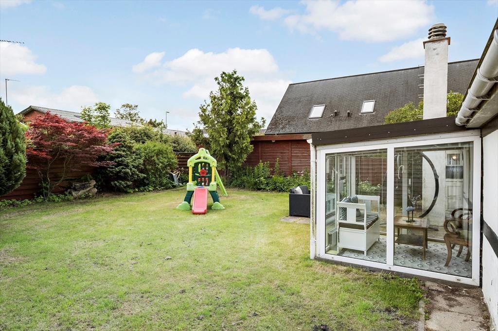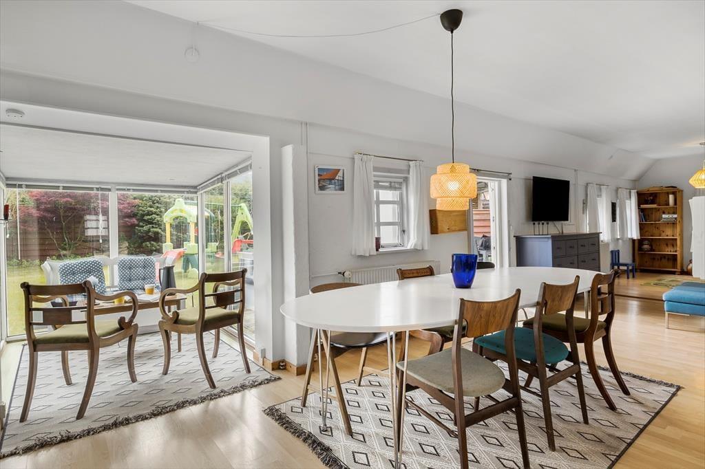 Udendørs kan du virkelig nyde livet i de dejlige omgivelser. Den store have er ideel til leg og afslapning for både børn og voksne. Her kan børnene løbe rundt og lege, mens de voksne slapper af i havemøblerne på den overdækkede terrasse. Den overdækkede terrasse er også perfekt til hyggelige måltider i det fri, uanset vejret. Her kan du nyde morgenkaffen, frokosten og aftensmaden, mens du beundrer den smukke have. Om aftenen kan du tænde op i grillen og tilberede lækre grillretter, mens solen går ned over landskabet. Med direkte adgang fra stuen til terrassen er det nemt at skabe en flydende overgang mellem indendørs og udendørs liv.