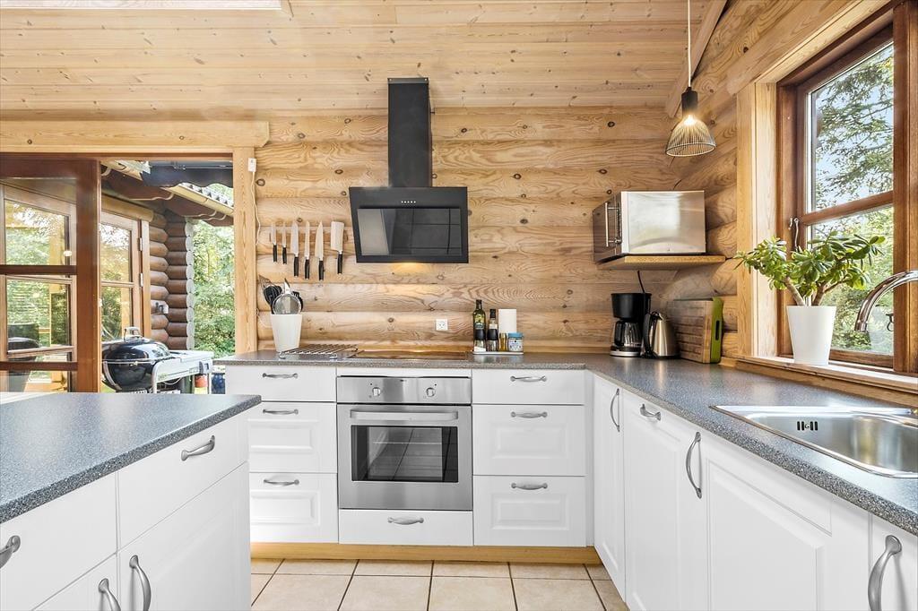 Indenfor venter en varm og indbydende atmosfære. Sommerhuset er bygget i klassiske bjælker, som skaber en rolig og autentisk sommerhusstemning. Her er højt til loftet, træ på væggene og en rummelig opholdsafdeling, hvor det er nemt at være sammen. Stuen og køkkenet ligger i åben forbindelse, så du kan holde øje med gryderne, mens samtalen flyder over spisebordet, eller mens nogen gør klar til brætspil i sofaen. Brændeovnen giver både varme og hygge – og på kølige dage kan du tænde op, finde en god bog frem og lade roen sænke sig. Sommerhuset har seks faste sovepladser, men der er også mulighed for at tilføje to ekstra på hemsen, hvis du kontakter bureauet. Uanset hvem du er afsted med – børn, venner eller bedsteforældre – er der god plads til både samvær og ro. Det er nemt at føle sig hjemme her.