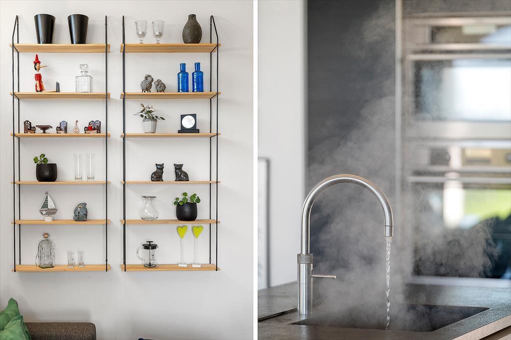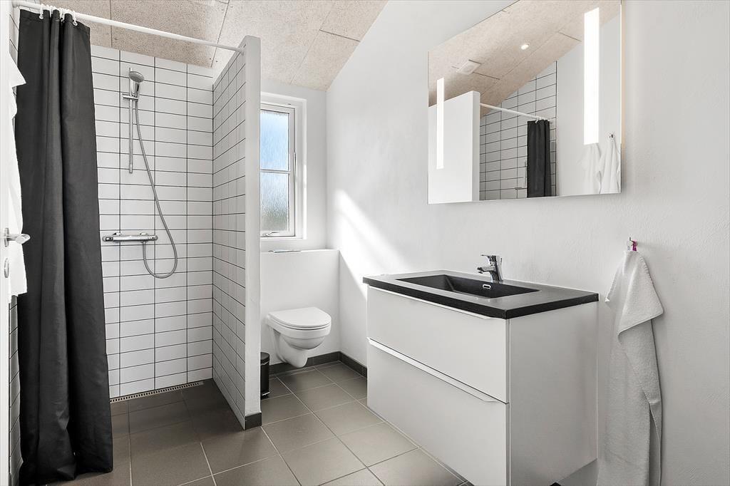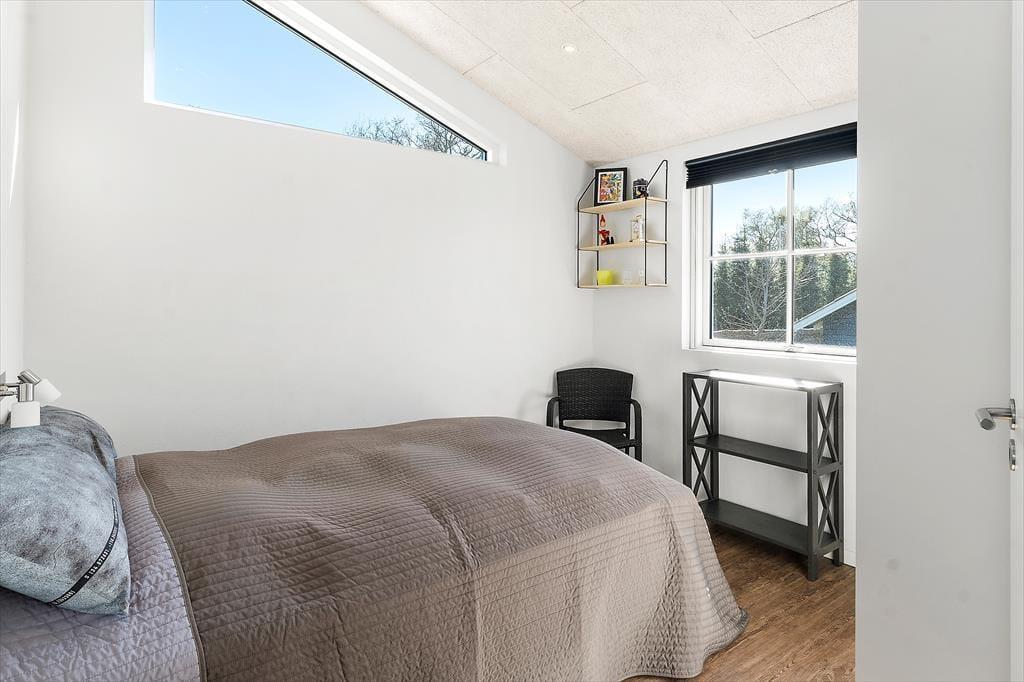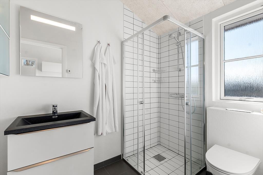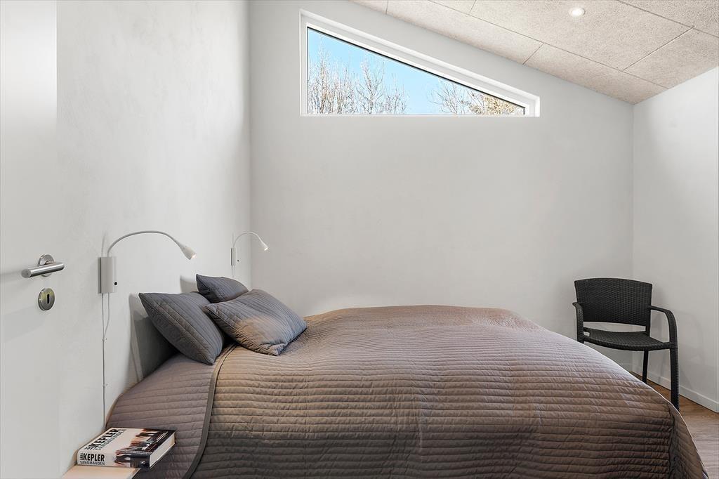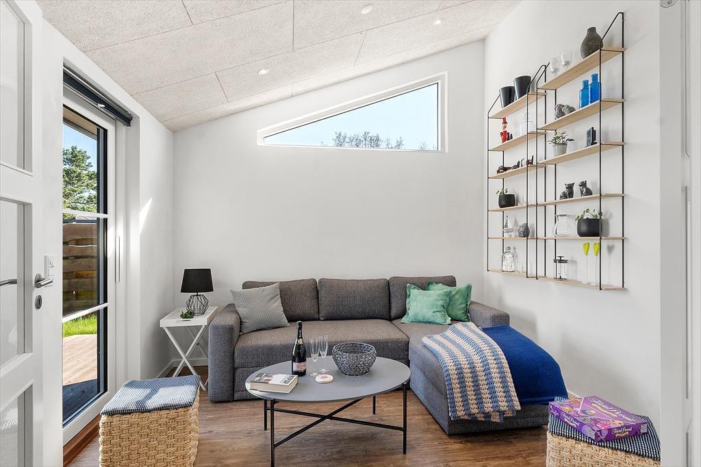 Indendørs venter en stilren og moderne indretning, hvor lysindfaldet og den rolige atmosfære straks får dig til at sænke skuldrene. Her kan I være op til seks personer, og med to badeværelser er huset ideelt til både børnefamilier og vennepar, der vil nyde ferien sammen uden at gå på kompromis med komforten. Opholdsrummet er husets naturlige samlingspunkt med en dejlig stue og et køkken i åben forbindelse. Her kan dagens måltider tilberedes i fællesskab, mens nogen slår sig ned i sofaen med en god bog eller måske tænder for brætspillet. Store vinduespartier åbner op mod terrassen og havudsigten, og selv fra spisebordet kan du lade øjnene vandre over bølgerne, mens I nyder morgenkaffen. Indretningen er gennemtænkt, lys og enkel med et skandinavisk præg, der skaber en følelse af ro og velvære – præcis som en feriebolig skal gøre.