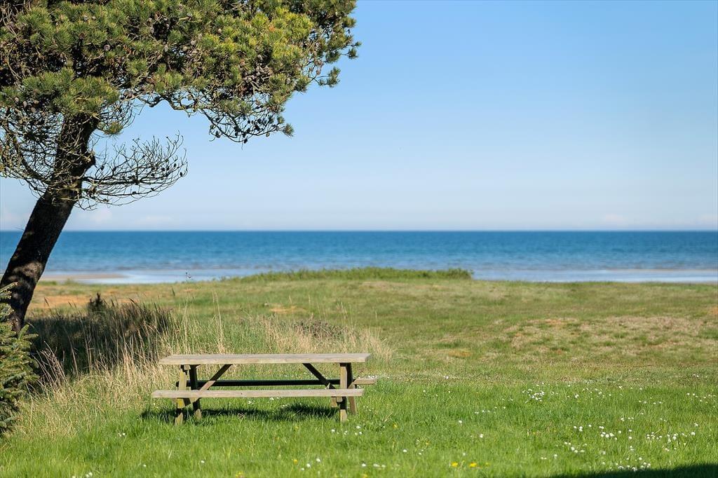 Når solen skinner over Øster Hurup – og det gør den ofte – bliver udelivet en stor del af ferieoplevelsen. Sommerhuset byder på flere skønne terrasser, hvoraf en er delvis overdækkede, så du kan vælge opholdsplads efter både vejr og stemning. Måske har du lyst til at starte dagen med en stille stund og en varm kop te i morgensolen, eller måske vil du samle hele familien til en grillaften i aftenskæret, mens børnene leger på plænen. Den storslåede havudsigt følger dig næsten overalt, og når vinden er mild, kan du høre Kattegats bølger rulle blidt mod kysten. I tørvejr og læ kan du læne dig tilbage i liggestolen og mærke ferieroen brede sig, mens du nyder duften af saltvand og sommer. Terrasserne er placeret, så du altid kan finde et solrigt hjørne eller skygge, hvis det er dét, du trænger til.