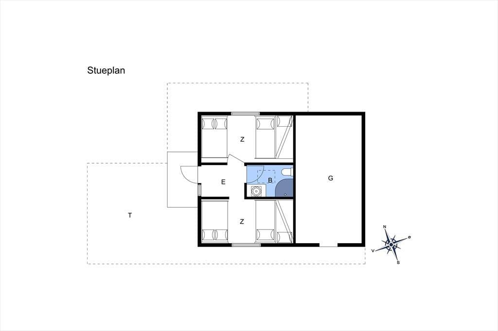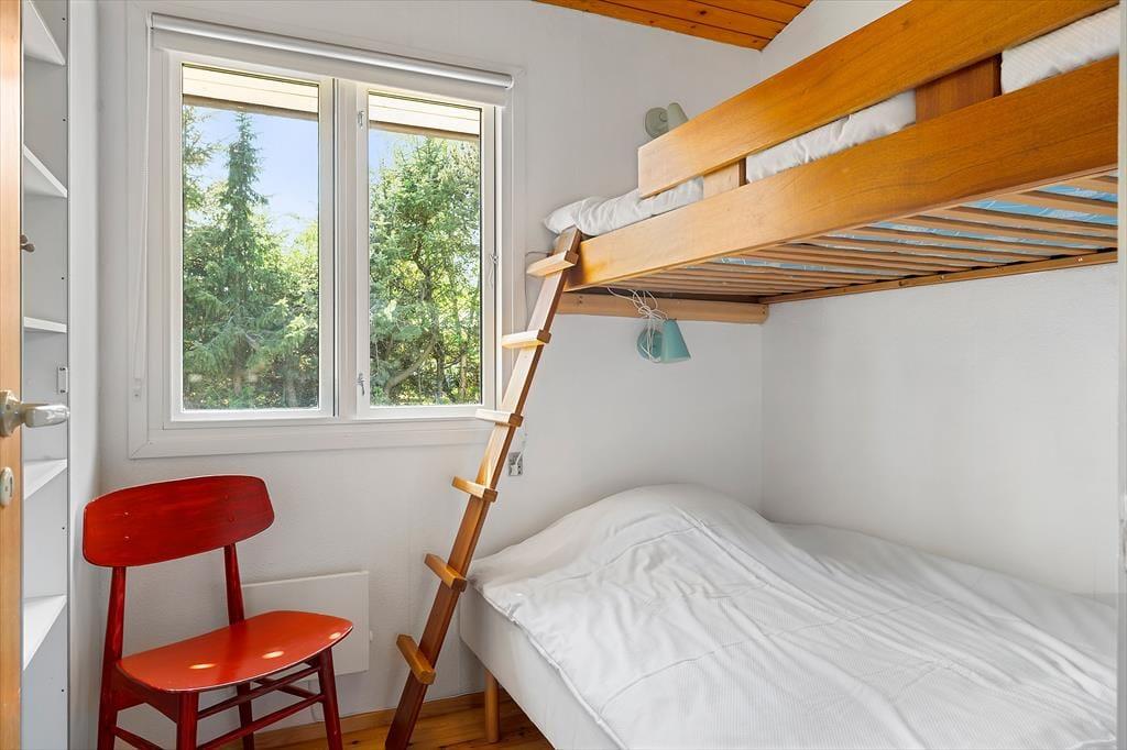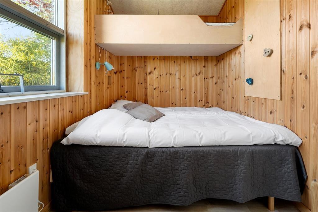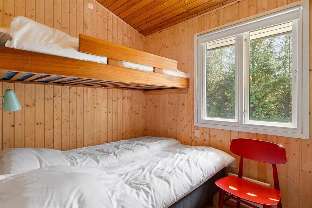 Indenfor i det hyggelige sommerhus er alt indrettet med fokus på nærvær og samvær. Der er en varm og venlig atmosfære over rummene, hvor det er nemt at finde sig til rette, smide skoene og bare være. Her er alt, hvad I har brug for til en ferie med lavt tempo og højt til loftet – bogstaveligt talt, for træhuset har en klassisk sommerhusstil med skrå vægge og synlige loftsbjælker, som bidrager til den hjemlige og nostalgiske stemning. I fællesrummene er der tænkt i hyggekroge, komfortable siddepladser og plads til både brætspil, film og lange samtaler ved spisebordet. Huset suppleres af et selvstændigt anneks med eget badeværelse – perfekt til teenagere, bedsteforældre eller det vennepar, der gerne vil kunne trække sig lidt tilbage i ny og næ. Det hele emmer af ro og rigtigt ferieliv, hvor hverdagens rutiner hurtigt forsvinder i baggrunden.