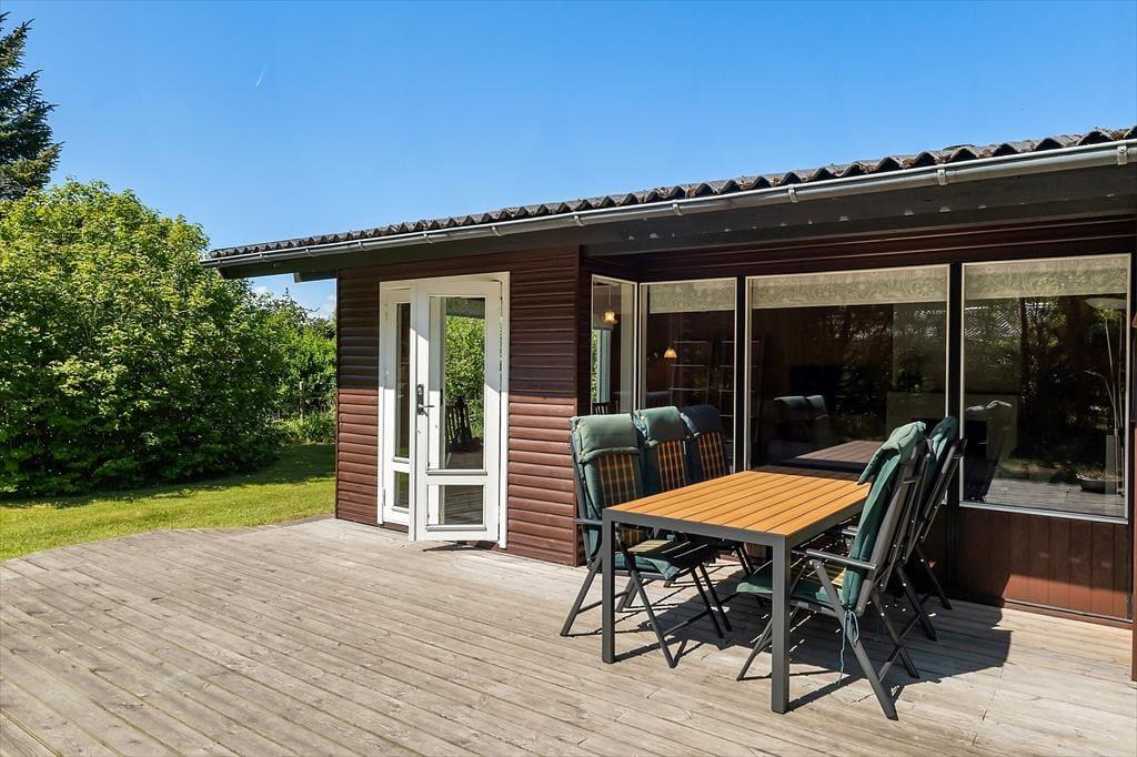 Omkring huset venter en grøn oase, hvor du kan nyde solen fra morgen til aften og lade dagens timer flyde afsted i fred og ro. På den rummelige terrasse er der masser af plads til at slå sig ned med en god bog, et glas rosé eller et spil kort i aftensolen – og når det er tid til at tænde op i grillen og dække bord til fællesspisning, er der lige så gode muligheder for at være sammen under åben himmel. Her vil både børn, voksne og firbenede familiemedlemmer elske at boltre sig på græsset og være med i sommerens klassikere som kongespil, fangeleg og måske et slag petanque. Det er den slags sommerhus, hvor man hurtigt finder sin yndlingsplet og bliver hængende lidt længere, end man havde tænkt – bare fordi det føles rart.