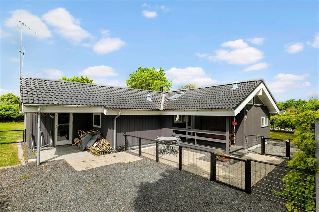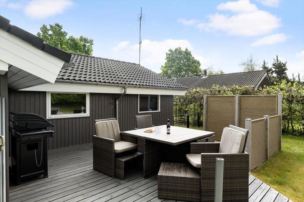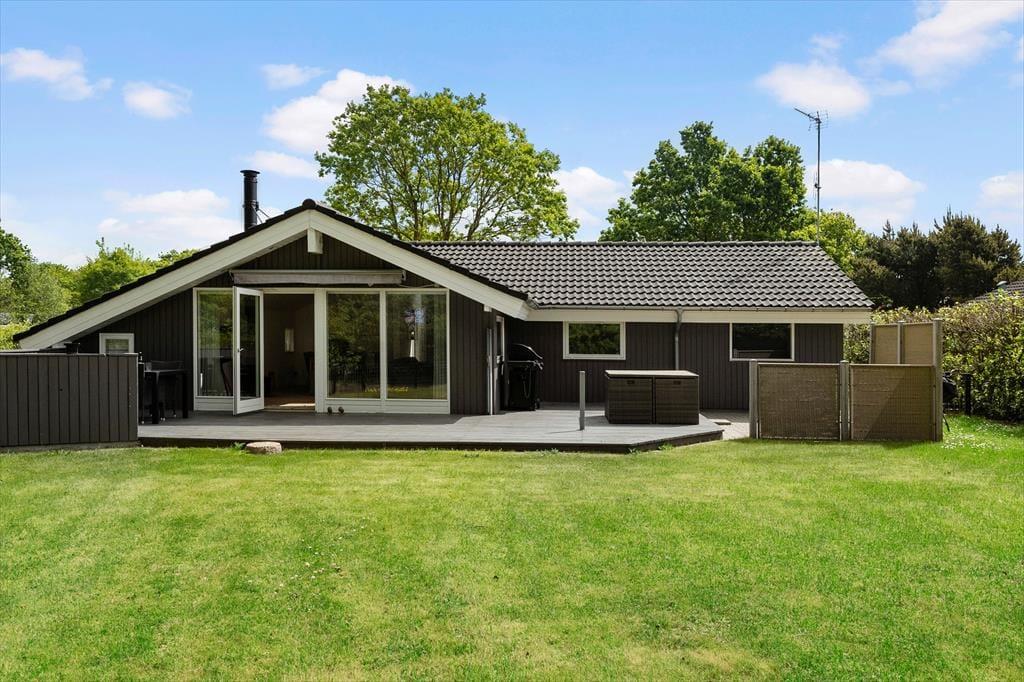 Haven er et lige så skønt opholdsrum som huset. Den store træterrasse fungerer som et naturligt samlingspunkt, hvor I kan indtage måltiderne i det fri, nyde en kop kaffe i morgensolen eller tænde op i grillen til en stemningsfuld sommeraften. Haven er indhegnet, så både børn og hund trygt kan lege på plænen, mens de voksne læner sig tilbage i havemøblerne. Når solen står højt på himlen, er det oplagt at trække ud under åben himmel og bare slappe af – måske med en bog, måske med et spil kroket eller bare med lukkede øjne, mens fuglesangen danner bagtæppe til feriedagen.