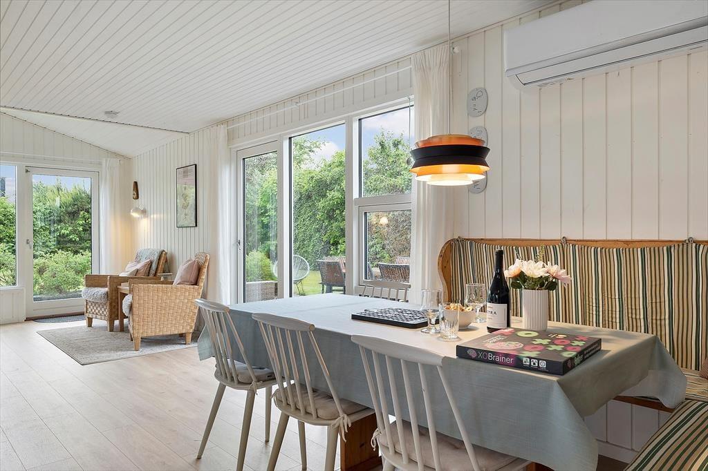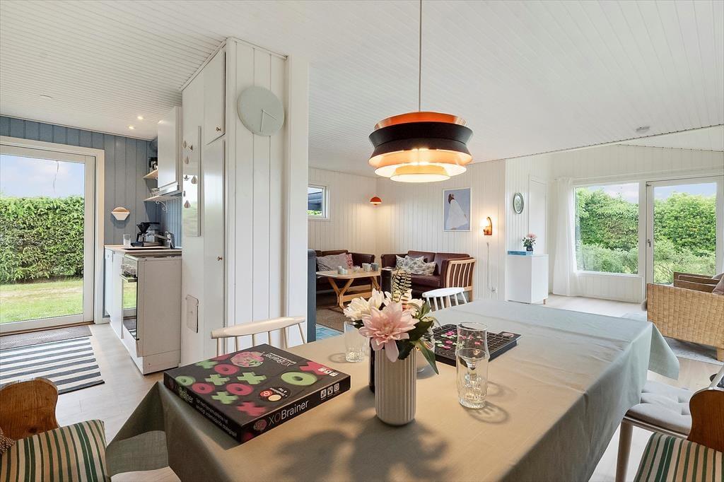 I den grønne og solrige have folder udelivet sig ud fra morgen til aften. Her er masser af plads til, at både børn og voksne kan boltre sig – hvad enten det er med boldspil på græsset eller afslapning i havemøblerne. Den sydvendte fliseterrasse er et oplagt samlingspunkt, hvor du kan nyde dagens måltider under åben himmel, tage en stille stund i solen eller bare lade dig glide ind i feriehumøret med en kold drik og udsigt til blå himmel. Når aftenen falder på, og du tænder op i grillen, er det nemt at mærke, at ferien for alvor er i gang. Alt omkring huset emmer af afslappet feriestemning og frihed til bare at være.