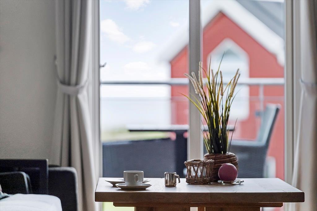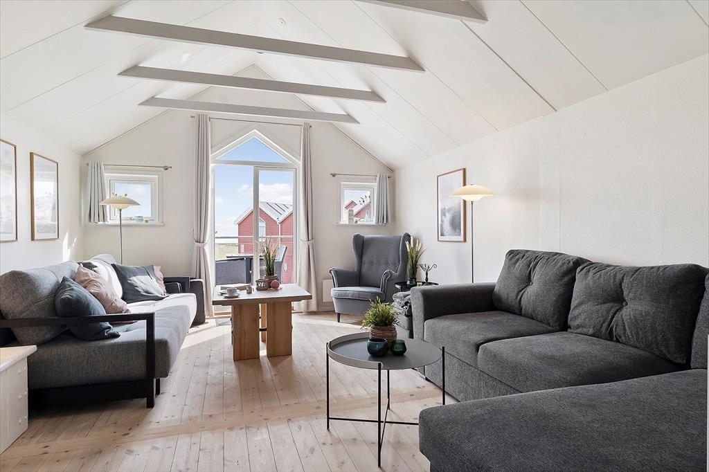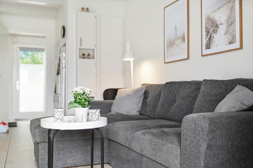 Indenfor i sommerhuset mødes du af en lys og indbydende atmosfære, hvor de hyggelige detaljer skaber en varm og rar stemning. Rummene er indrettet med fokus på komfort og afslapning, og opholdsstuen indbyder til rolige stunder med god læsning eller samtaler med familien. Fra stuen er der fri udsigt til havet, så selv når I opholder jer indendørs, kan I nyde bølgernes skvulp og den friske havluft. Ferielejlighedens indretning er ideel til både par og familier, og med mulighed for at børnene kan lege sikkert udenfor, kan de voksne nyde kaffepauser, madlavning og hyggelige aftener i fred og ro. Det er nemt at føle sig hjemme her, og husets lyse farvetoner og hyggelige detaljer gør det til et sted, man har lyst til at blive i – også selvom dagene byder på sol og strand.