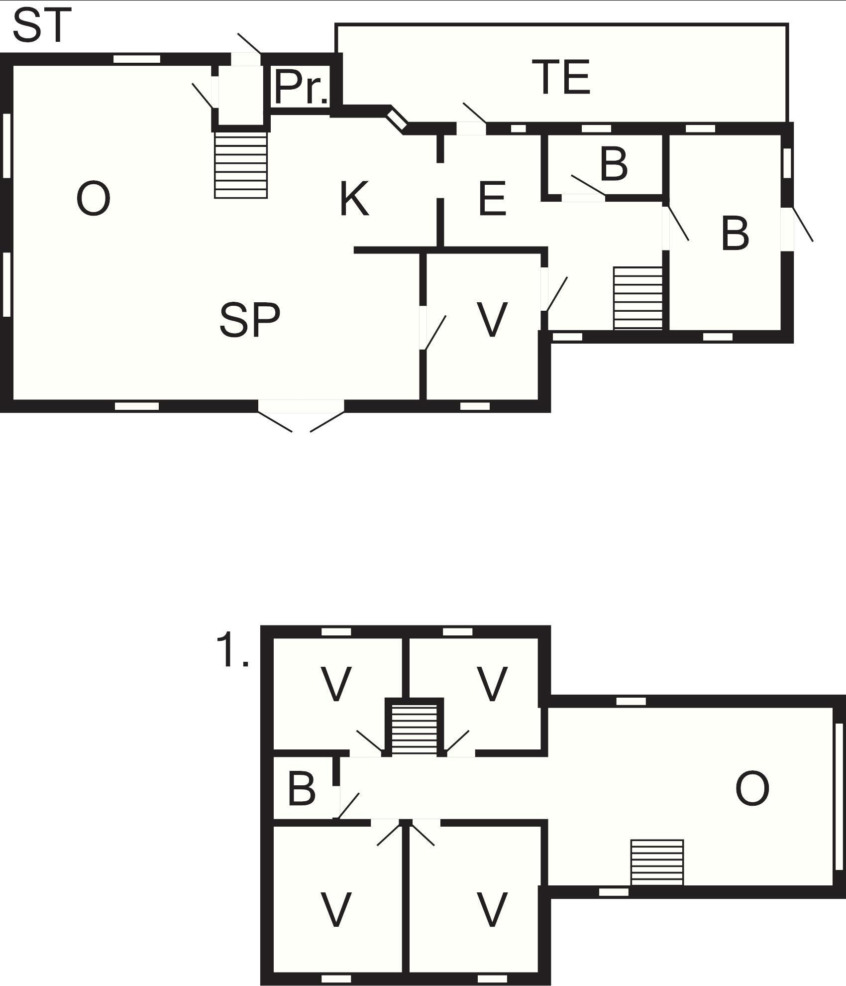 Ovenpå giver første sal endnu mere plads med en anden stue med en hyggelig alkove til at slappe af eller læse. Der er også to soveværelser med dobbeltsenge og to ekstra soveværelser indrettet med 3/4 senge, hvilket gør det nemt at rumme større familier eller vennegrupper. Et gæstetoilet og flere terrasser giver ekstra komfort og udendørs opholdsmuligheder. Med sit gennemtænkte design, flere samlingsrum og enestående beliggenhed tæt ved havet er dette feriehus et fantastisk valg for dem, der søger både fritid og samvær i Øster Hurup.