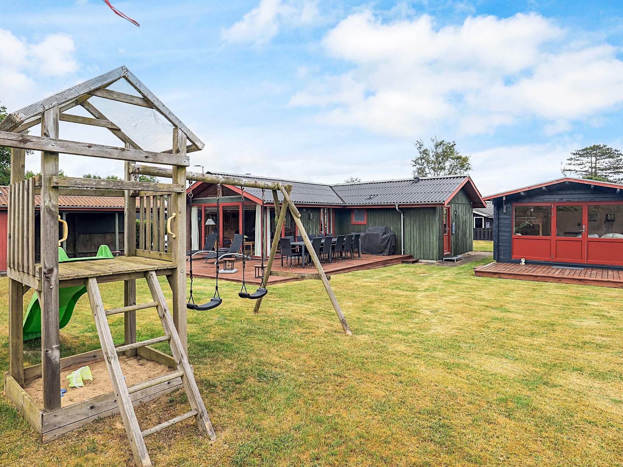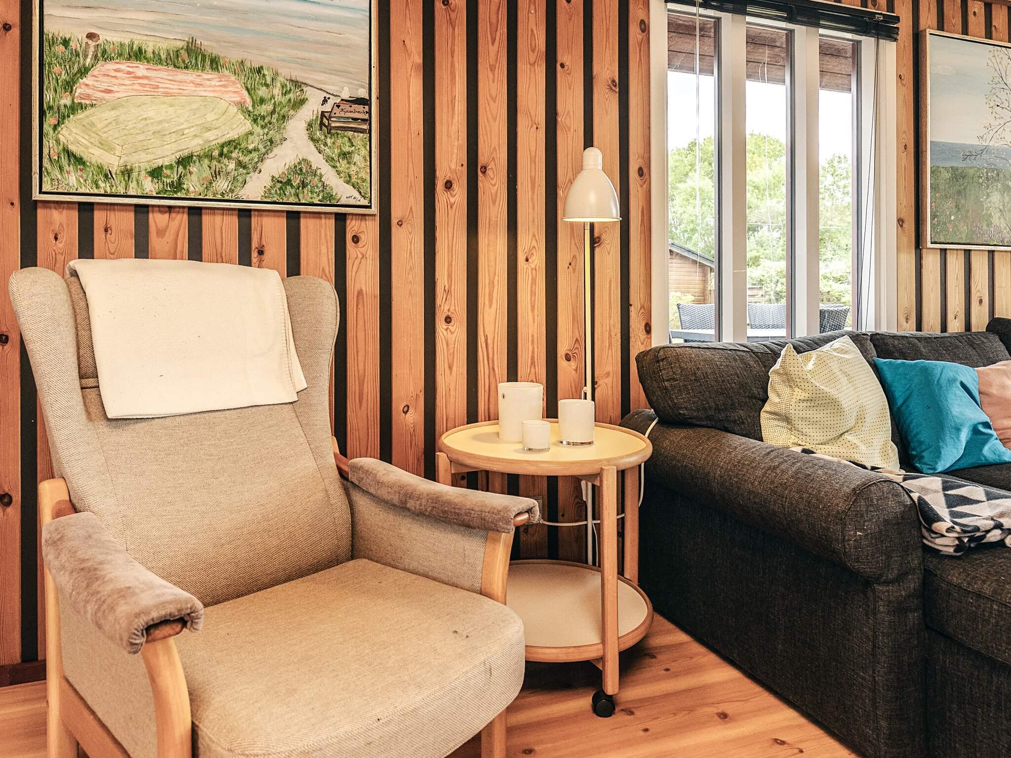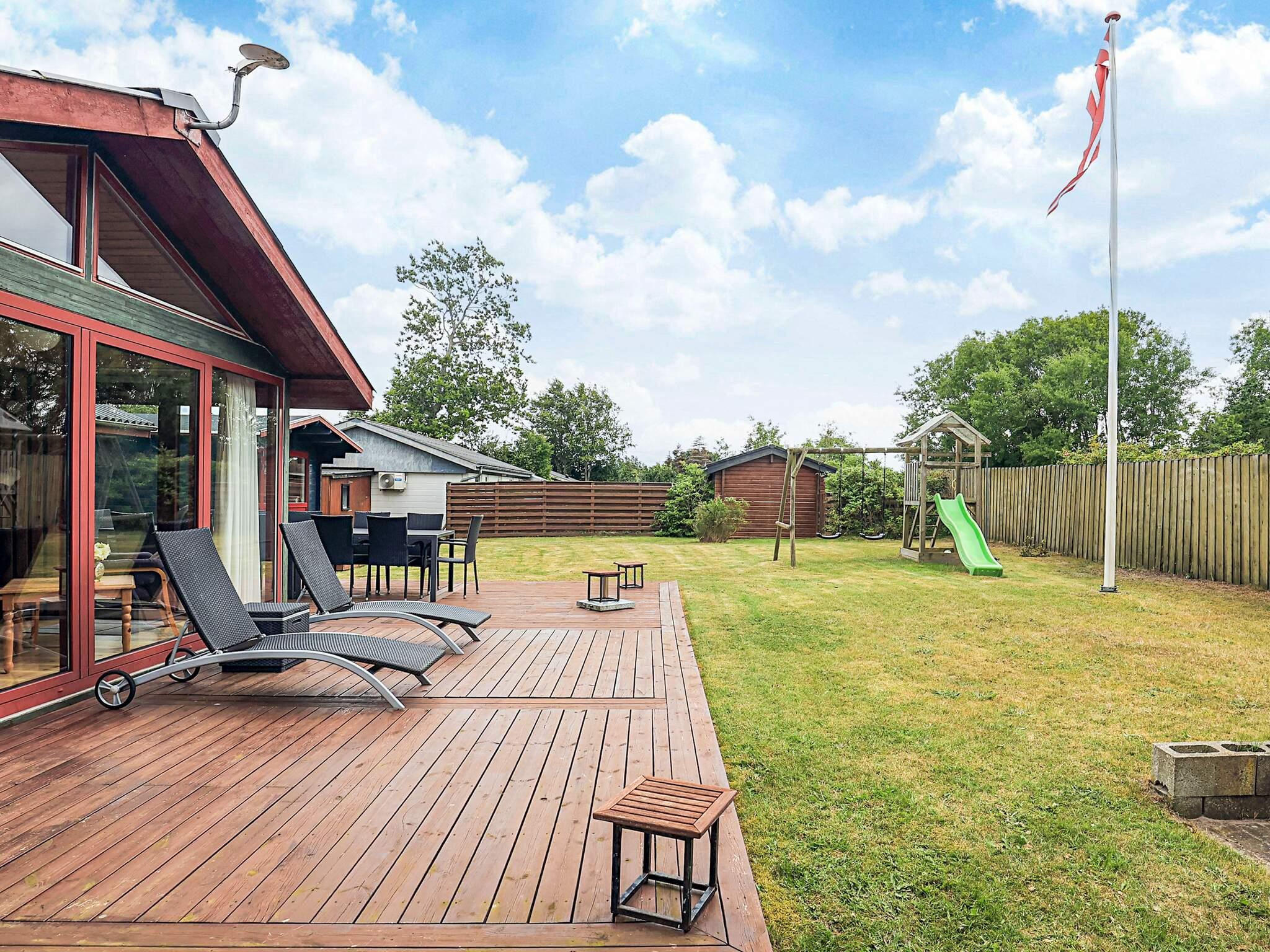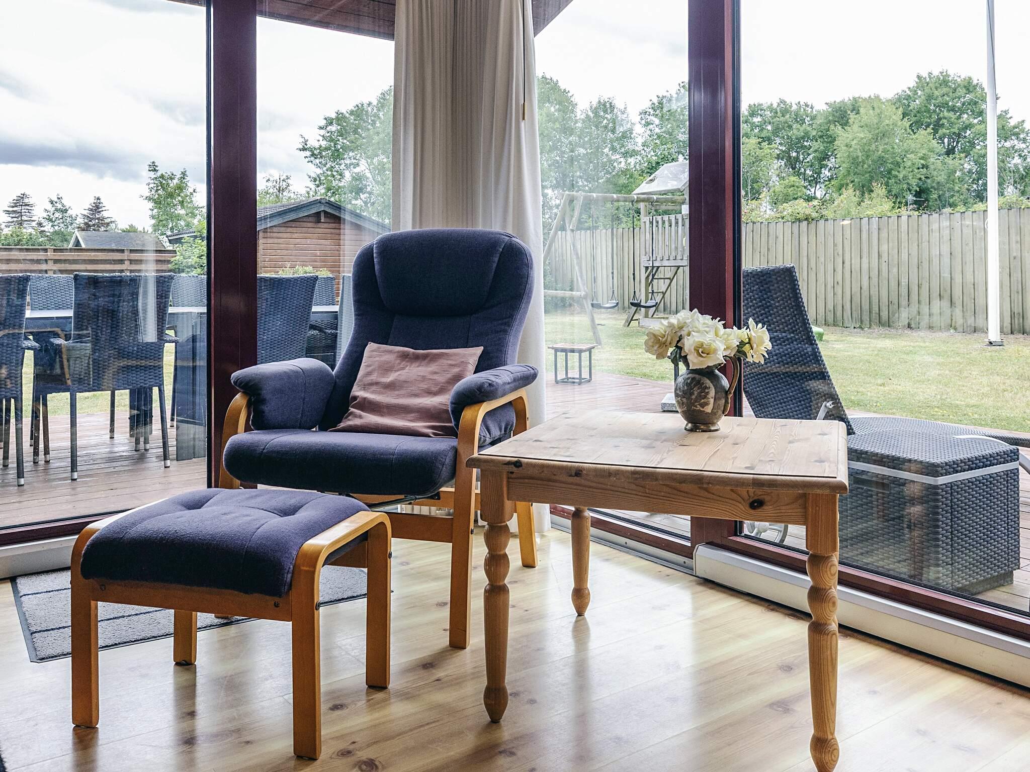 Lyst køkken med udsigt over vandet, køkkenet ligger i åben forbindelse med spisestuen og stuen med brændeovn og varmepumpe. Fra stuen er der udgang til den en stor træterrasse og have med gyngestativ og legeredskaber. 1 dobbeltværelse med 2 senge enkelt/dobbelt et værelse med 2 senge enkelt/dobbelt og 2 køjesenge. Badeværelse med bruser og toilet. Der er et stort anneks med 3/4 seng og 2 køjer. Teknikrum med vaskemaskine