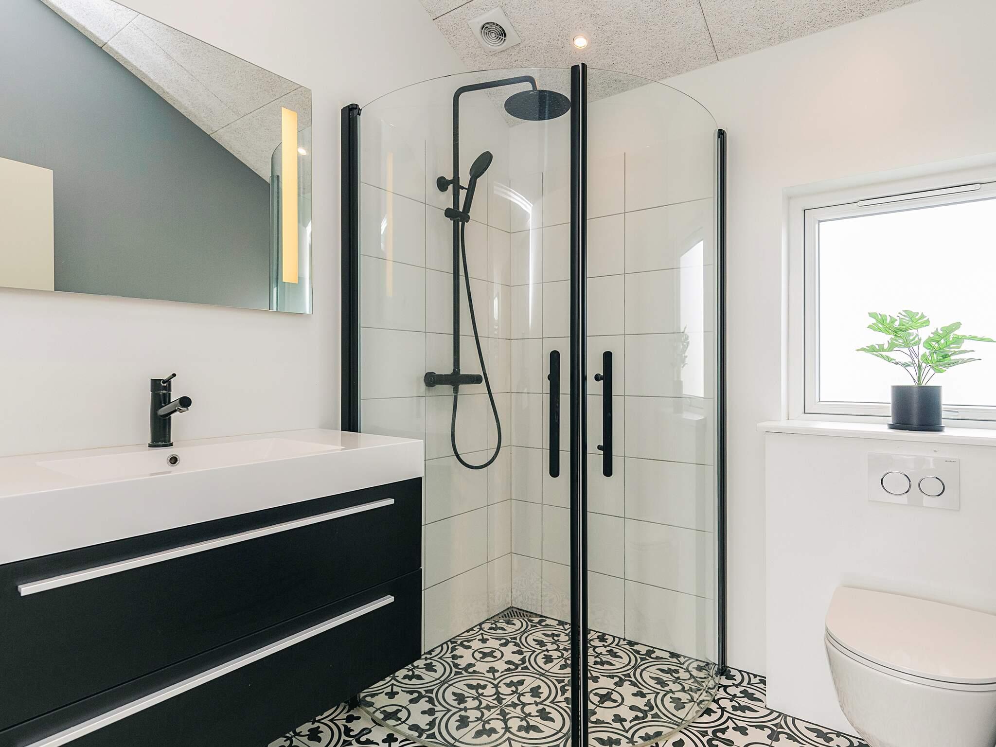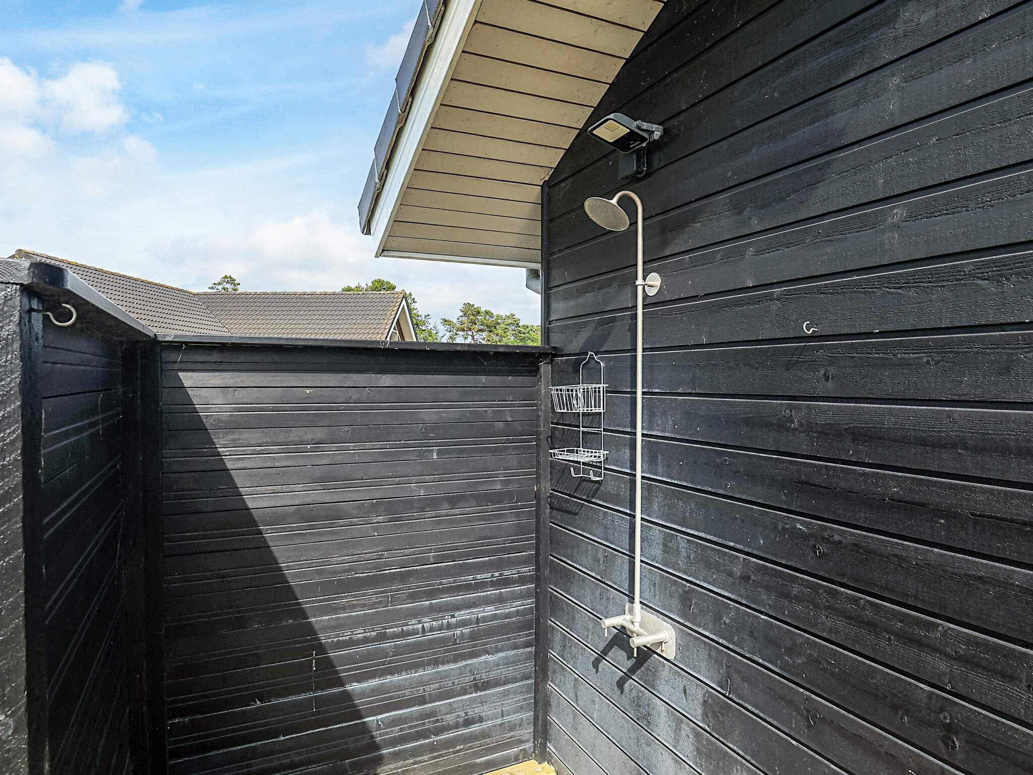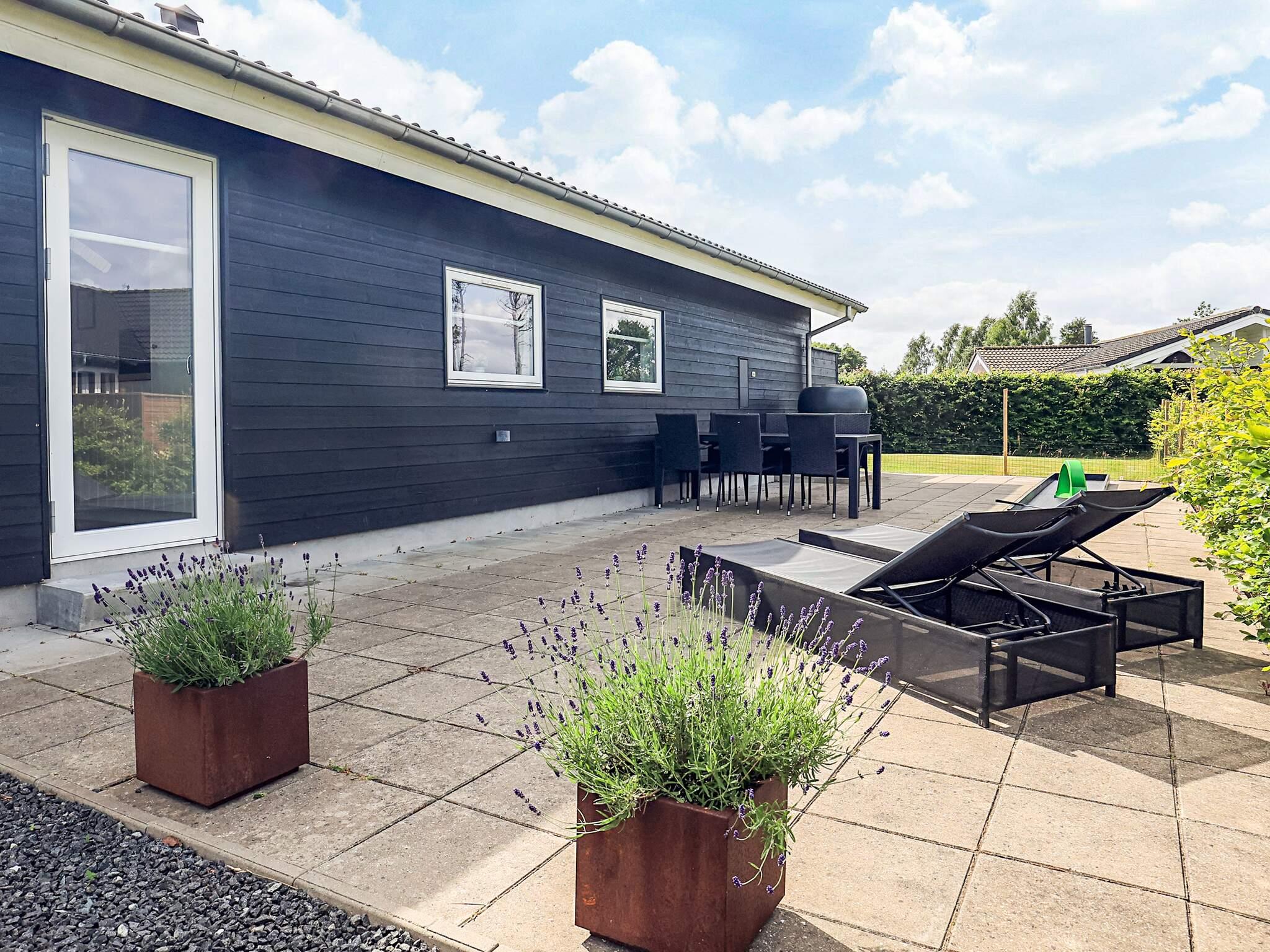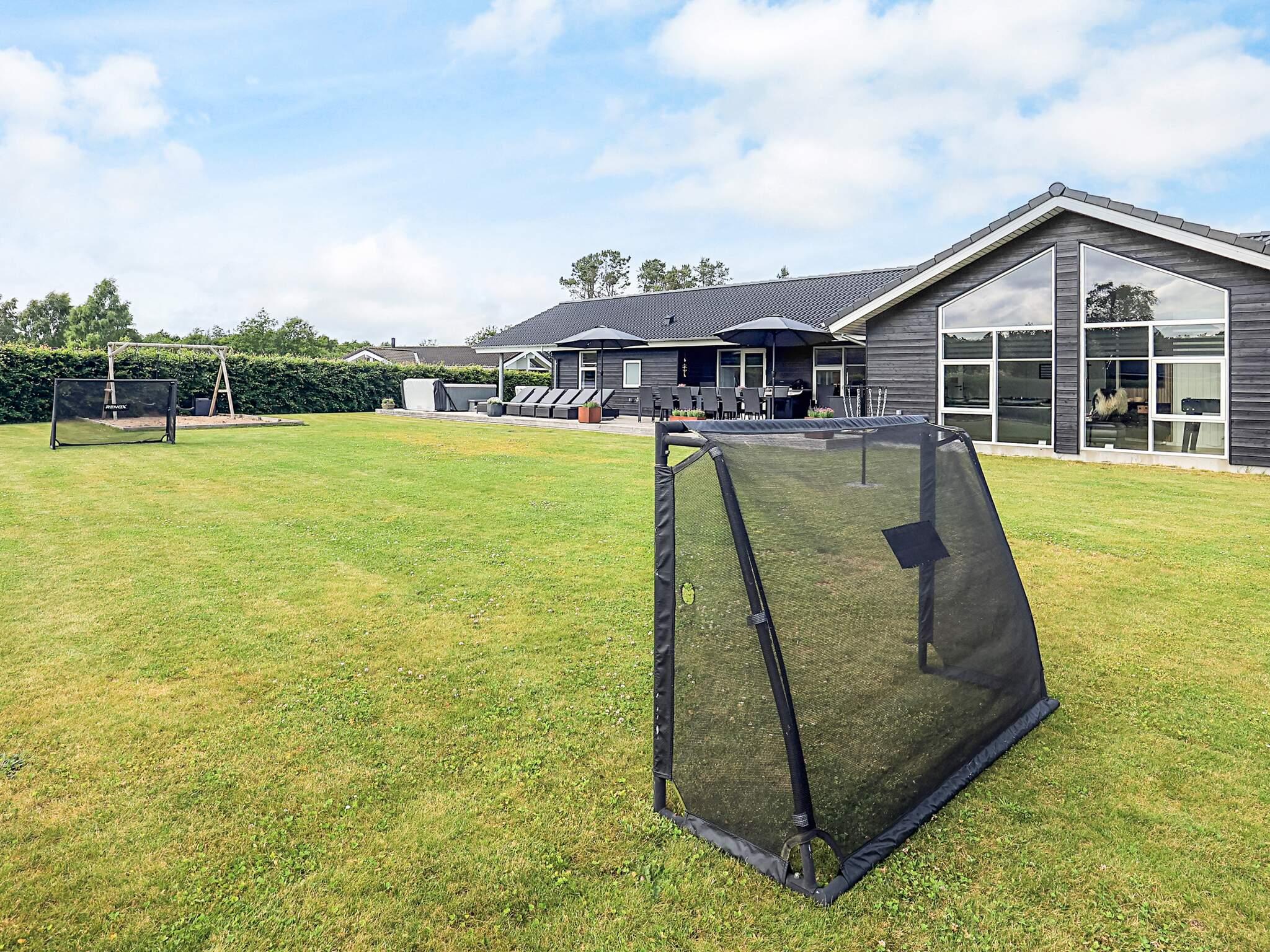 Flot sommerhus i Øster Hurup med stor terrasse, udendørs spa og aktivitetsrum, perfekt til familier og samvær.