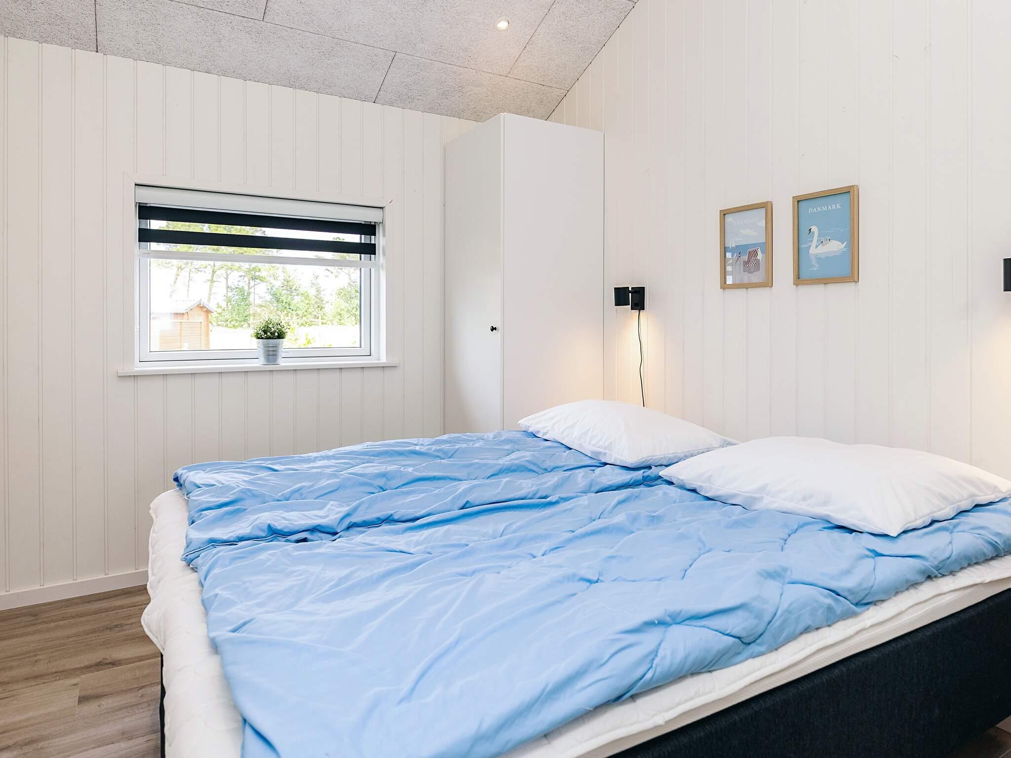 Huset har 4 gode soveværelser med dobbelt eller enkeltsenge som kan sættes sammen og et værelse med 4 køjepladser. 2 badeværelser med toilet og bruser.