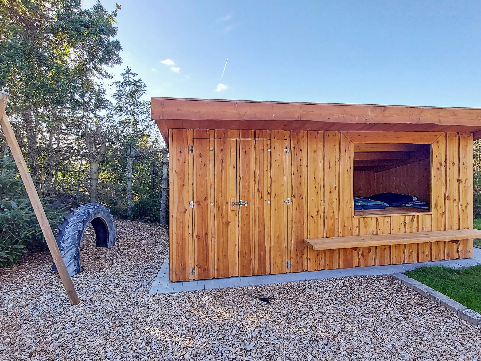Køkkenafdeling med bl.a. mikroovn, opvaskemaskine og køleskab med 60 l. fryser. I haven er der gynger, sandkasse, aktivitetstårn med rutchebane og petanquebane på 3x12 m. Der er træpilleovn, som i kolde perioder kan opvarme huset for under DKK 50,00/døgn (træpiller købes i huset). Instruktion forefindes.