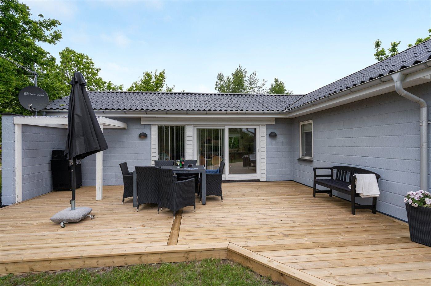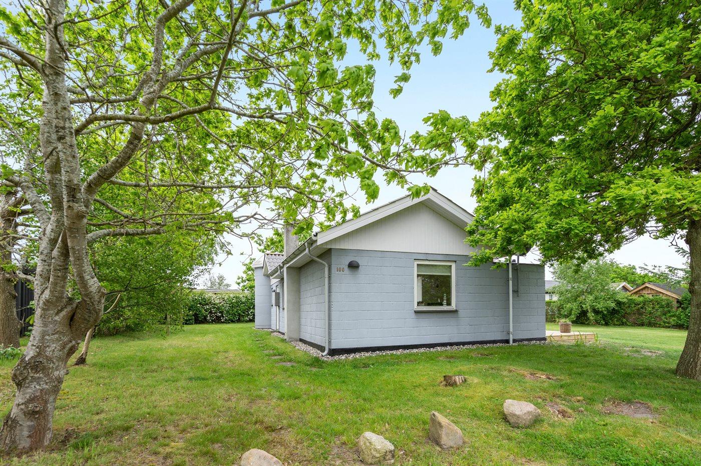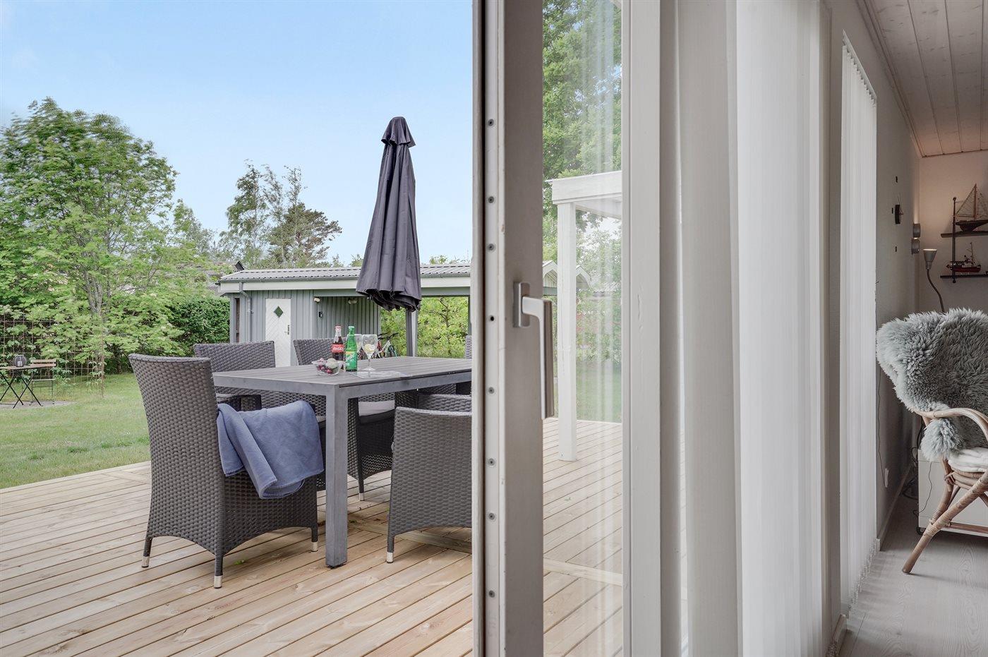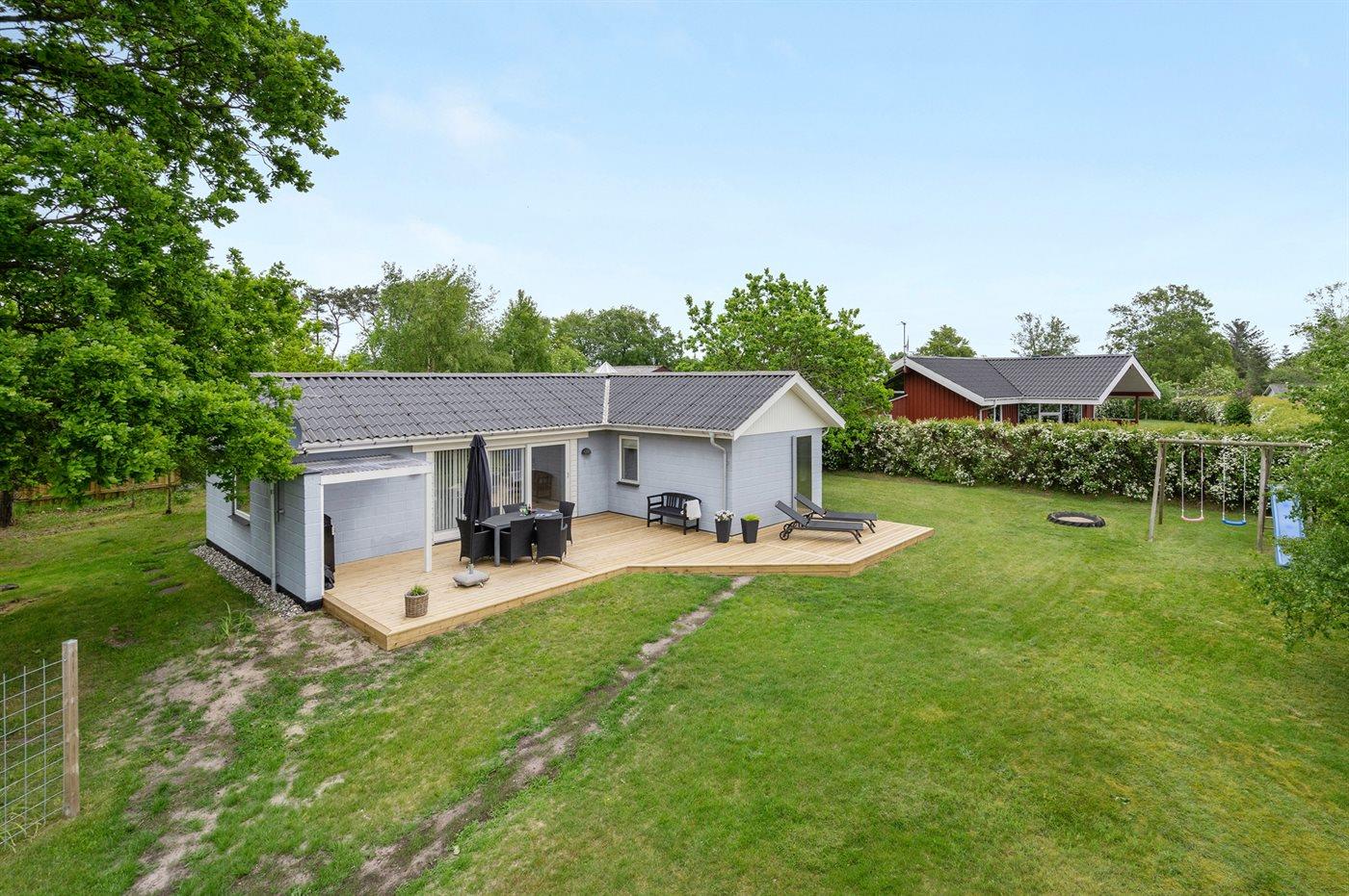 Ferieboligen er beliggende på en 830 m² stor naturgrund. Der er 800 m til havet. Nærmeste forretning er beliggende i en afstand af 900 m. Til ferieboligen hører 42 m² terrasseareal. Desuden er der 4 m² overdækket terrasse. Der er redskabsrum. Gynge. Sandkasse. Grill til rådighed. Der er carport til rådighed. Der er installeret stik til opladning af elbil.