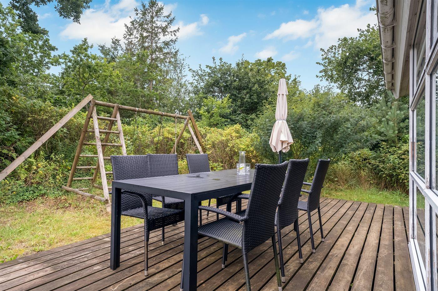 Barneseng og høj barnestol til rådighed. På grunden er der gynge og sandkasse til børnene. Et dejligt sommerhus, der er velegnet til 2 familier. Sommerhuset ligger i et naturskønt område med gode aktivitets-, bade- og indkøbsmuligheder.