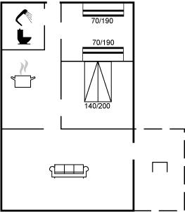 Funktionelt køkken med bl.a. mikrobølgeovn og fryser. Hyggeligt indrettet opholdsstue med spiseplads og TV. Sovepladserne fordeler sig på 1 soveværelse med dobbeltseng samt 1 værelse med 2 køjesenge. Badeværelse med gulvvarme og bruser. Til de mindste feriegæster findes der høj barnestol og barneseng.