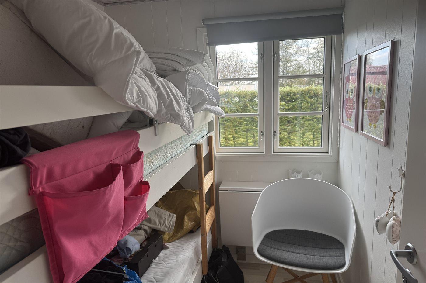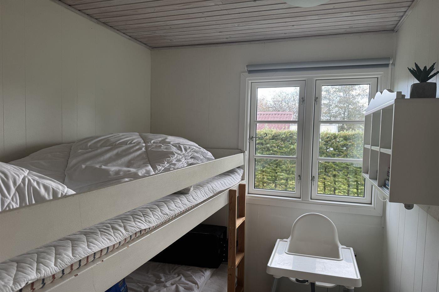 Der er i alt 4 soveværelser. Sovepladserne fordeler sig på: 4 sovepladser i dobbeltsenge. 4 sovepladser i køjesenge. Derudover er der 1 stk. barneseng.
