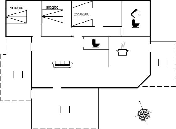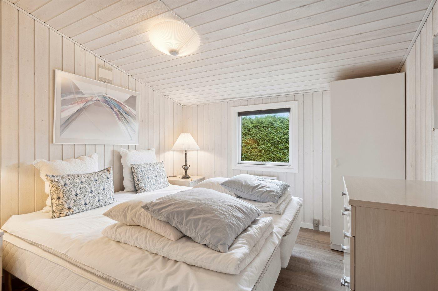 Der er i alt 3 soveværelser. Sovepladserne fordeler sig på: 4 sovepladser i dobbeltsenge. 2 sovepladser i enkeltsenge. Derudover er der 1 stk. barneseng.