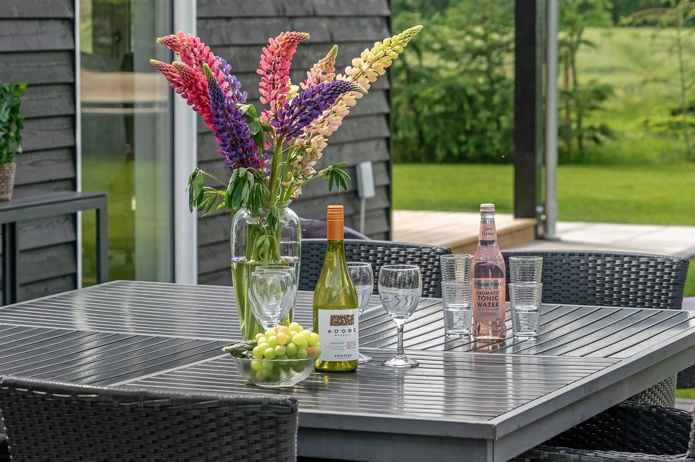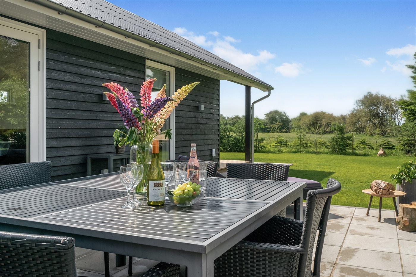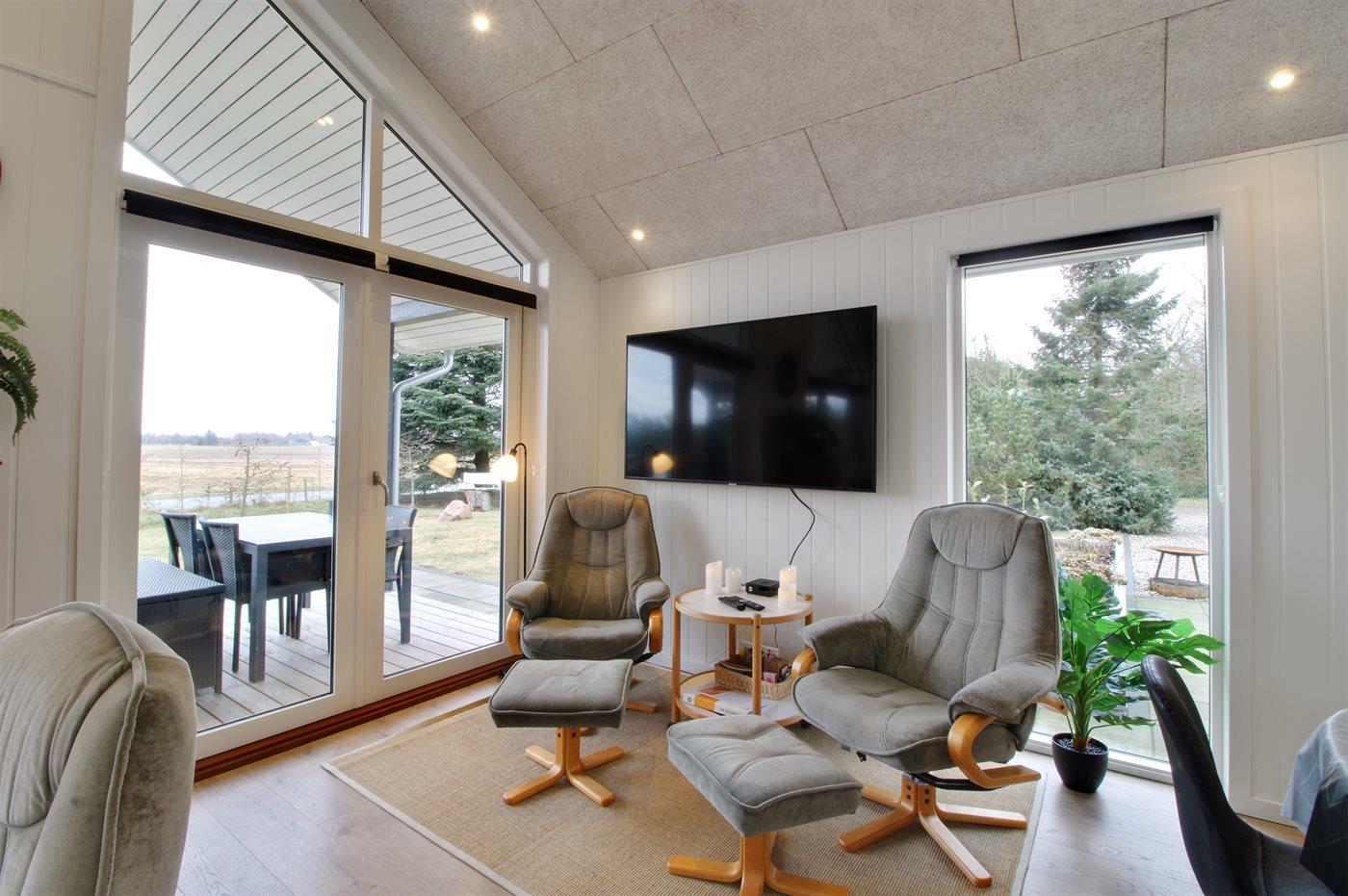 Lyst og moderne sommerhus fra 2019 nær Øster Hurup med spa, stor terrasse og plads til familien.