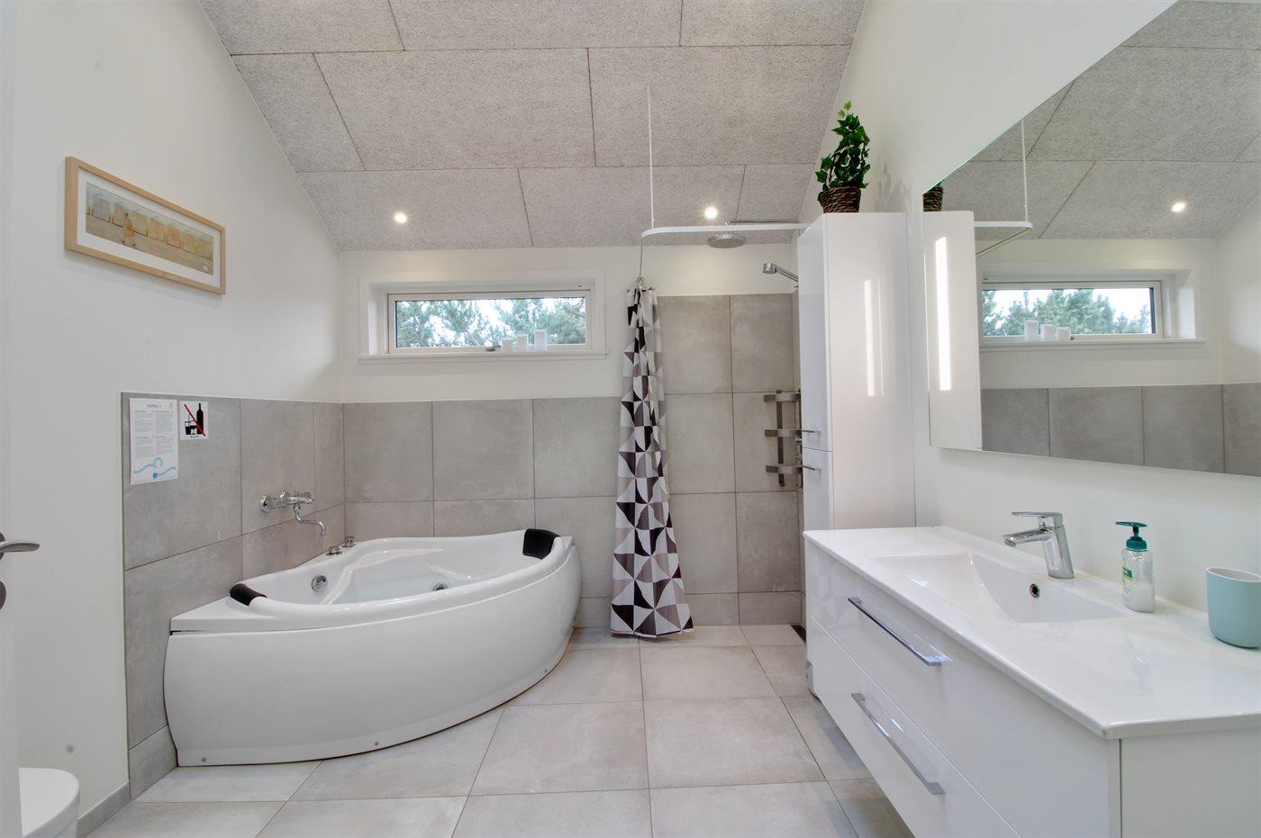 Der er 2 badeværelser med bruseniche og 2 toiletter. Der er gulvvarme på 2 badeværelser.
