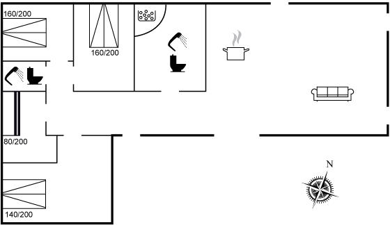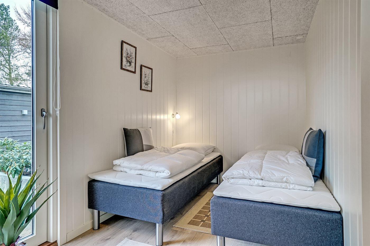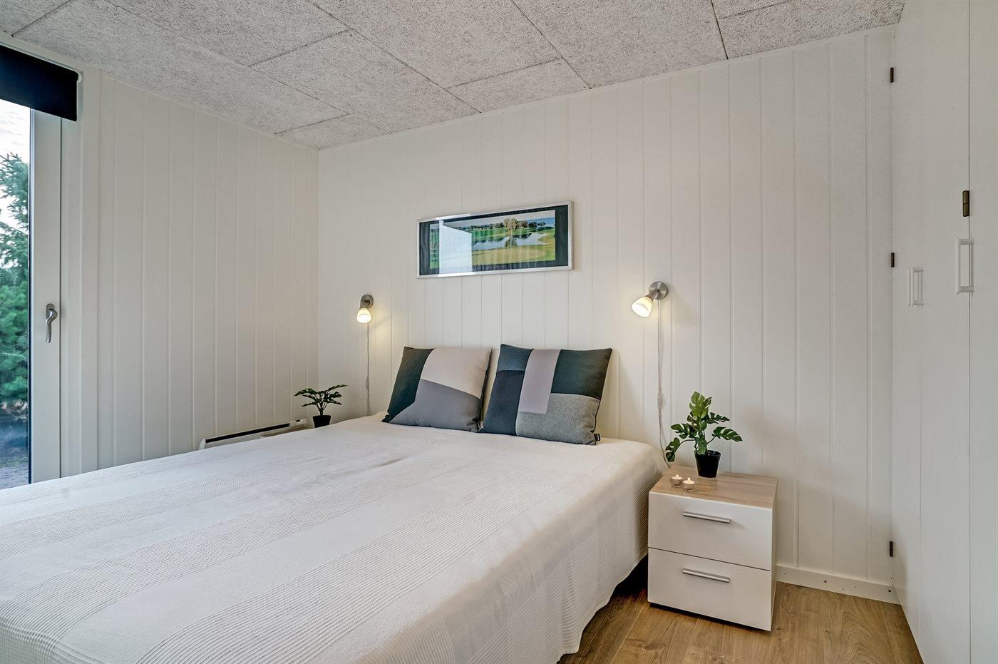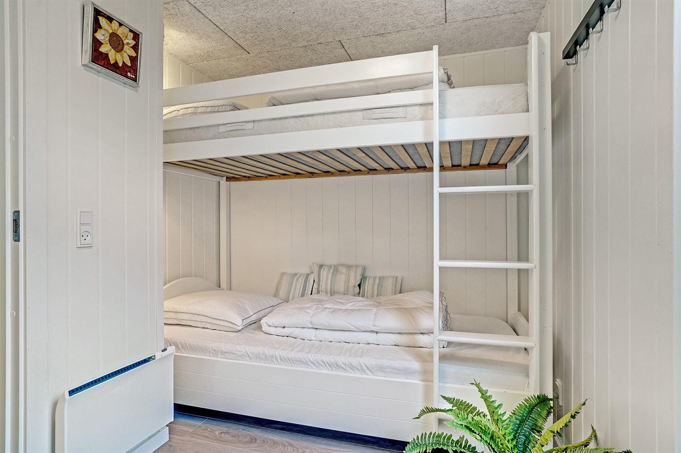 Der er i alt 4 soveværelser. Sovepladserne fordeler sig på: 6 sovepladser i dobbeltsenge. 2 sovepladser i køjeseng. Derudover er der 1 stk. barneseng.