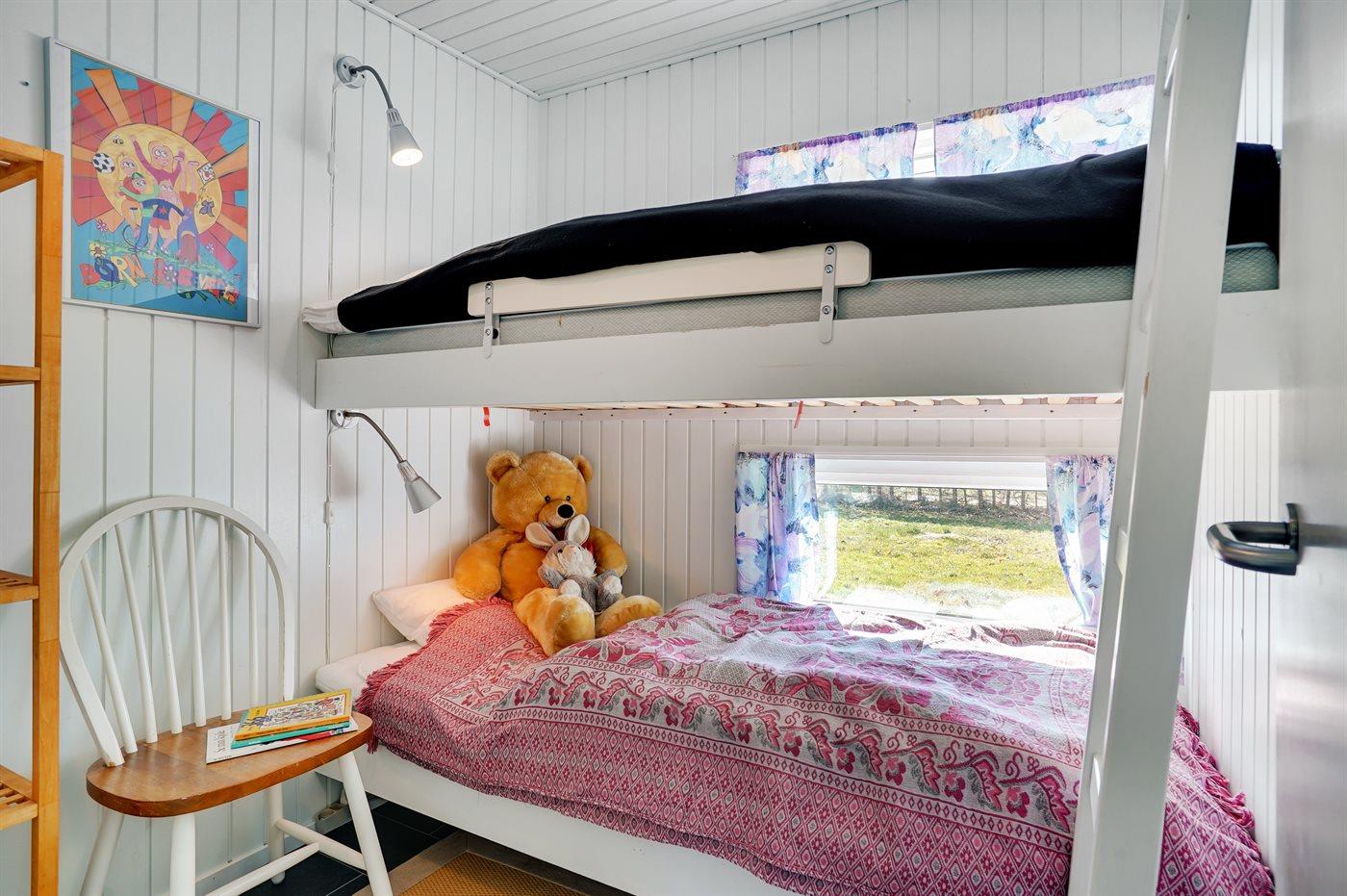 Der er i alt 3 soveværelser. Sovepladserne fordeler sig på: 2 sovepladser i dobbeltseng. 2 sovepladser i enkeltsenge. 2 sovepladser i køjeseng.