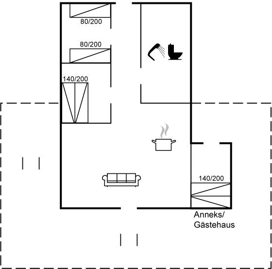 Der er i alt 3 soveværelser. Sovepladserne fordeler sig på: 4 sovepladser i dobbeltsenge. 2 sovepladser i enkeltsenge. 2 af disse sovepladser befinder sig i et anneks.