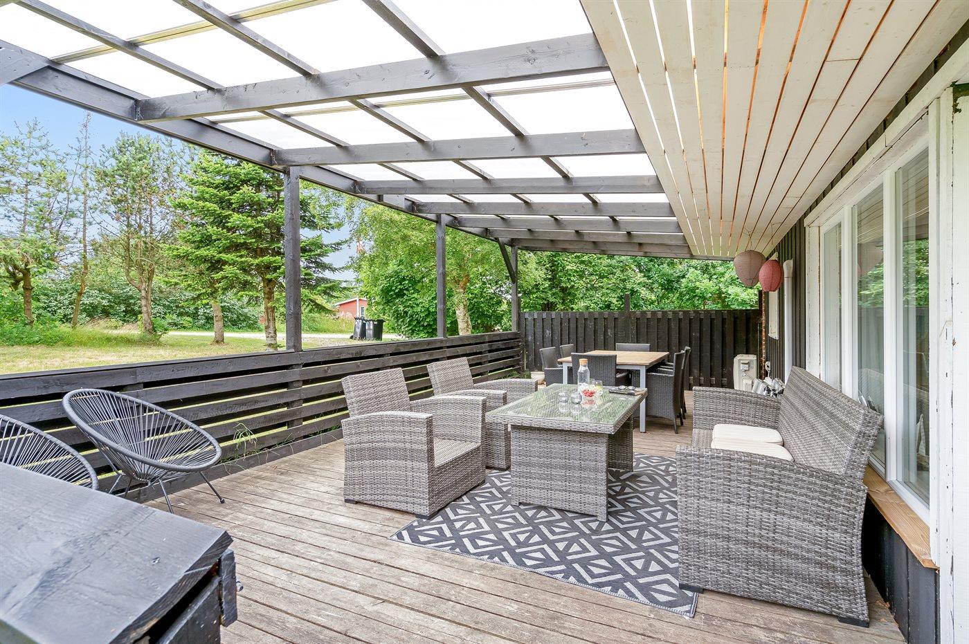 Ferieboligen er beliggende på en 1288 m² stor havegrund. Der er 555 m til havet. Nærmeste forretning er beliggende i en afstand af 495 m. Der er en golfbane i en afstand af 16500 m. Til ferieboligen hører åbent terrasseareal. Desuden er der overdækket terrasse. Bålsted. Der er carport til rådighed. Der er installeret stik til opladning af elbil. Parkering ved ferieboligen.