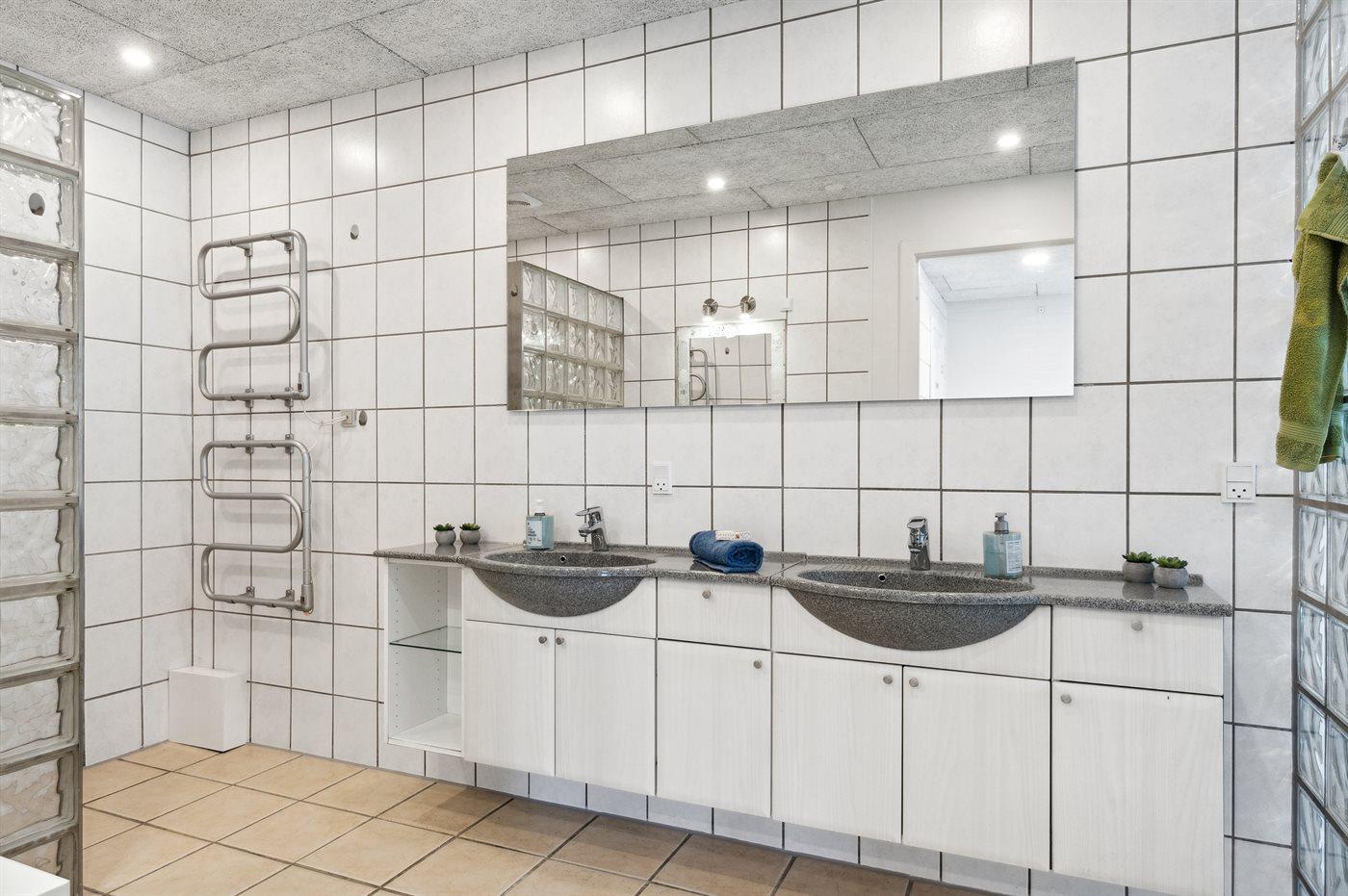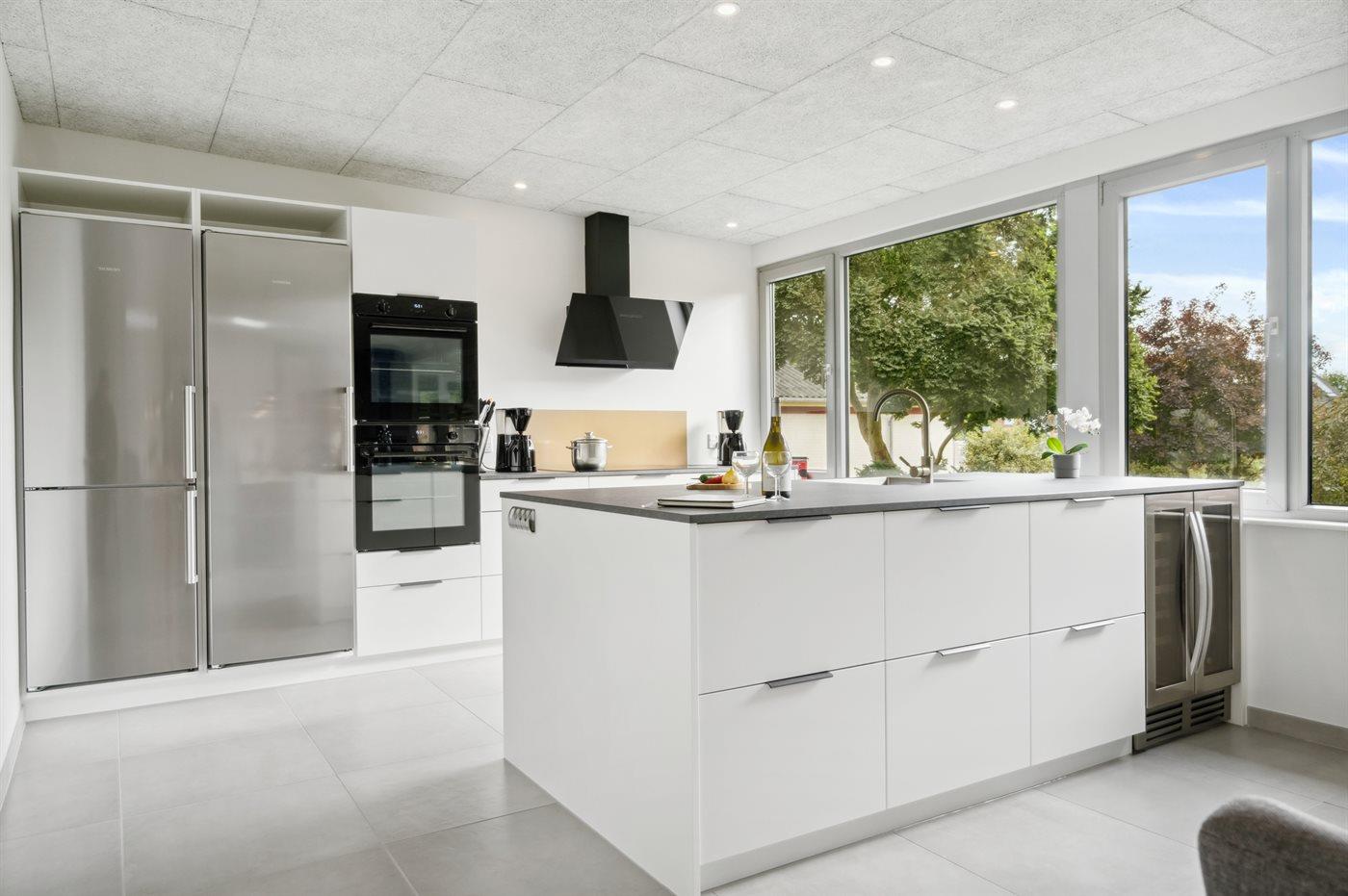 Køkkenet er designet til store sammenkomster og er fuldt udstyret med ikke én, men to køleskabe, to ovne, to opvaskemaskiner samt to kaffemaskiner og fem induktionskogeplader. Et stort spisebord giver plads til hele familien, så måltiderne kan nydes i fællesskab.