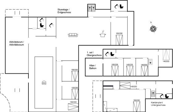 Højdepunktet i dette hus er uden tvivl den rummelige indendørs poolområde med hele 42 m³ vand, der inviterer til sjove vandaktiviteter. Der tilstøderogså et aktivitetsrum, hvor hele familien kan udfordre hinanden med en bred vifte af underholdning, lige fra billard til bordfodbold, dart, bobspil og bordtennis. Her kan I også hygge jer omkring brændeovnen eller fordybe jer i underholdning på Smart-TV'et.