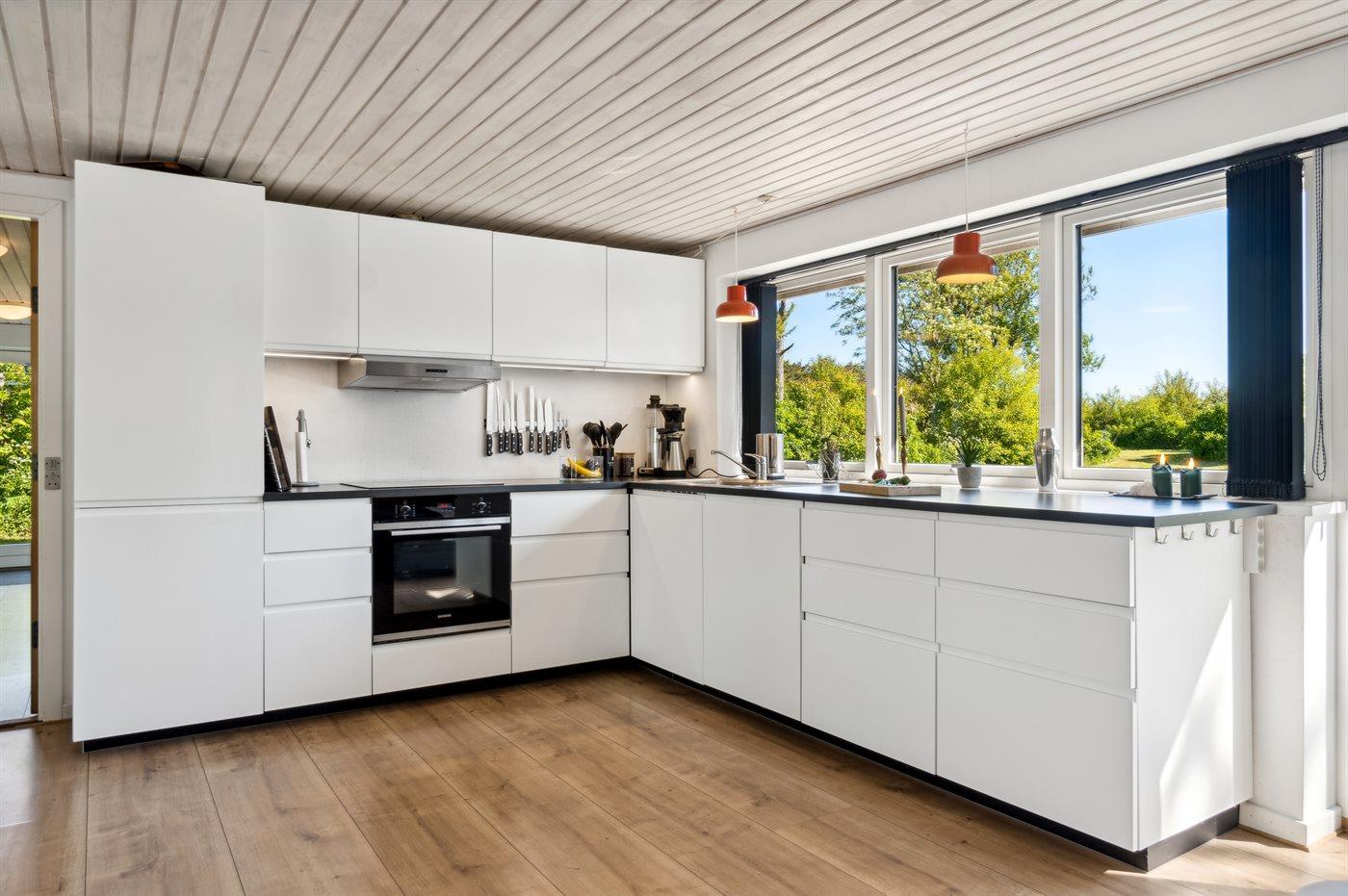 Køkkenet er udstyret med 1 køleskab. Der er 4 keramiske kogeplader, varmluftovn samt opvaskemaskine.