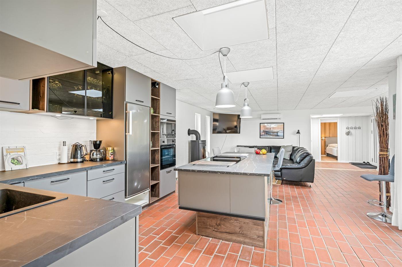 Køkkenet er udstyret med 1 køleskab. Der er 4 induktionskogeplader, varmluftovn, mikrobølgeovn samt opvaskemaskine.