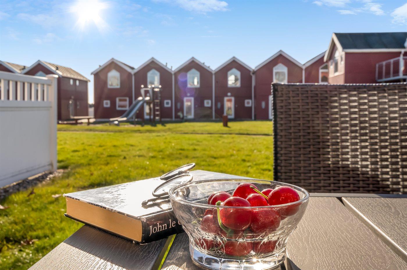 Lejligheden har plads til 6 voksne og 1 hund, hvilket gør den perfekt til familieferien eller en afslappende ferie med venner. Udenfor finder I en hyggelig terrasse med grill, hvor I kan nyde solrige dage og lune aftener med havluften i baggrunden.