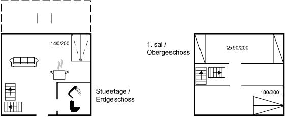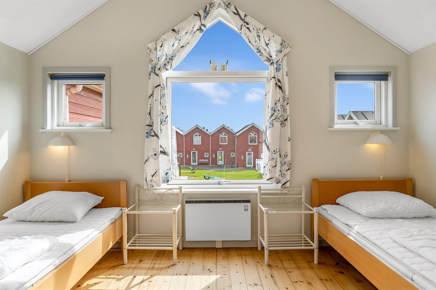 Der er i alt 2 soveværelser. Sovepladserne fordeler sig på: 2 sovepladser i dobbeltseng. 2 sovepladser i enkeltsenge. 2 sovepladser i sovesofa (dobbelt). 2 af disse sovepladser befinder sig i stuen.
