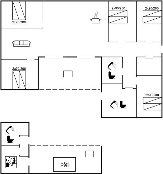 Der er i alt 5 soveværelser. Sovepladserne fordeler sig på: 10 sovepladser i enkeltsenge. Derudover er der 1 stk. barneseng.