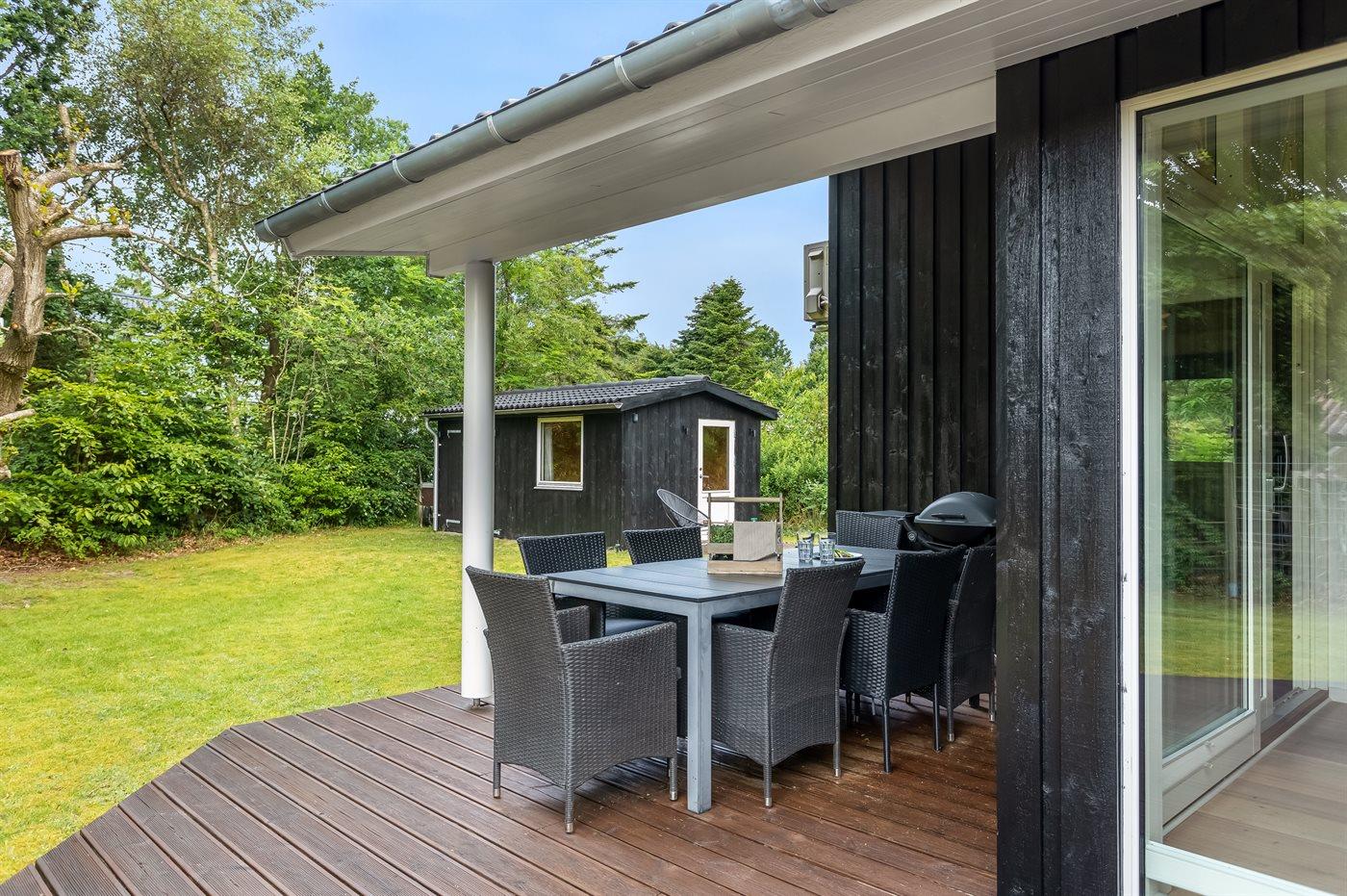 Ferieboligen er beliggende på en 801 m² stor havegrund. Der er 350 m til havet. Der er 8700 m til fjorden. Der er en badebro i nærheden. Nærmeste forretning er beliggende i en afstand af 3000 m. Der er en golfbane i en afstand af 14600 m. Til ferieboligen hører 40 m² terrasseareal. Desuden er der 20 m² overdækket terrasse. Grill til rådighed. Parkering ved ferieboligen.