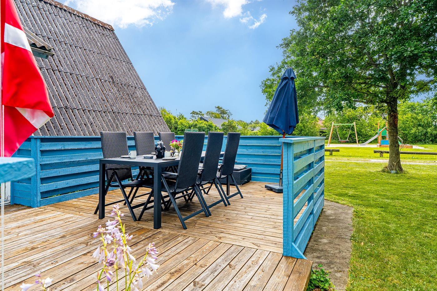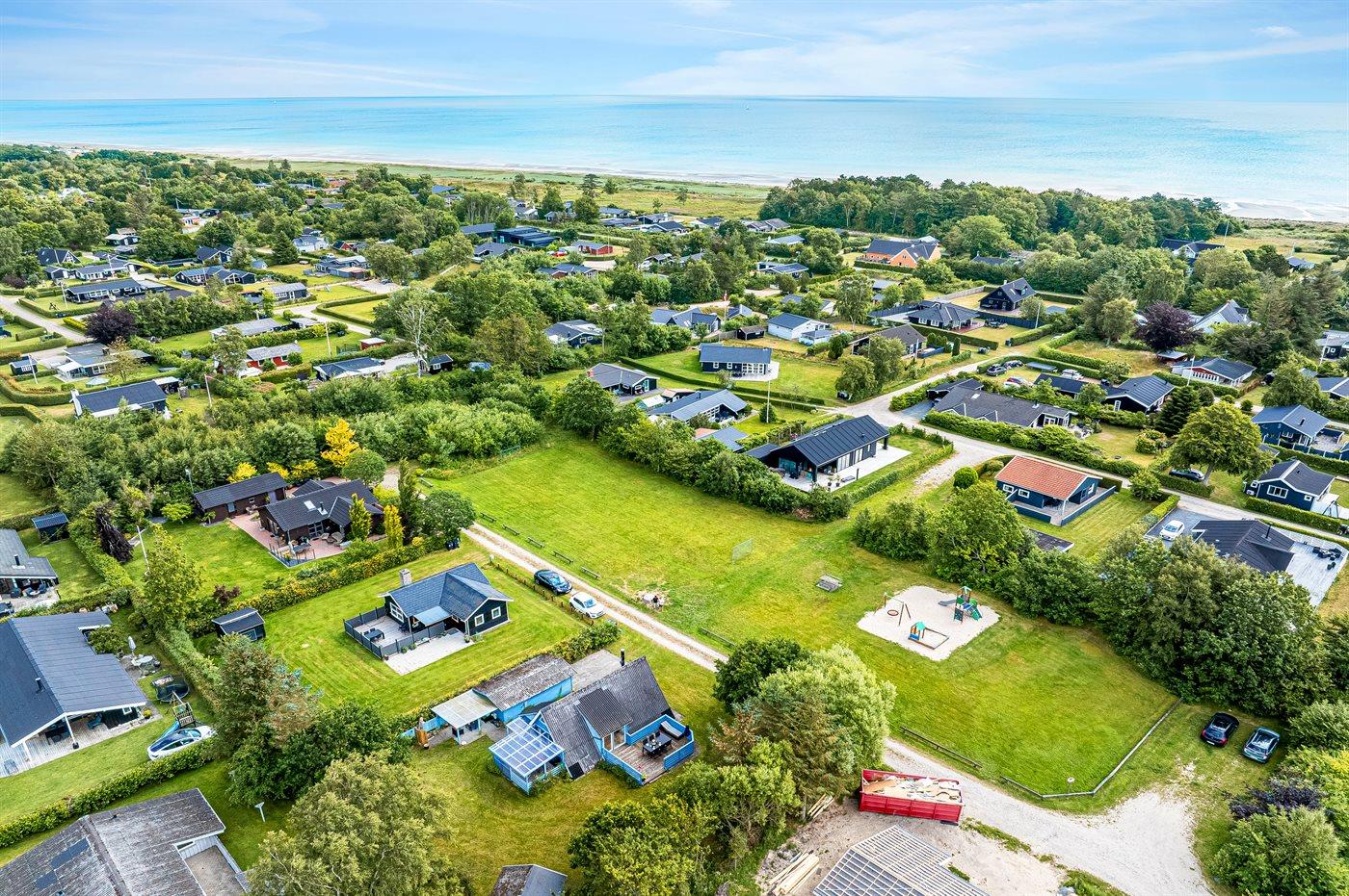 Ferieboligen er beliggende på en 809 m² stor havegrund. Der er 400 m til havet. Nærmeste forretning er beliggende i en afstand af 980 m. Til ferieboligen hører åbent terrasseareal. Desuden er der overdækket terrasse. Grill til rådighed. Parkering ved ferieboligen.