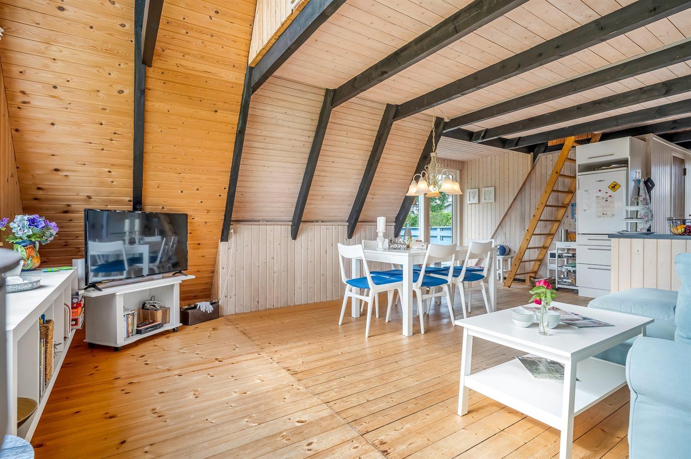 Et hyggeligt sommerhus i charmerende A-form med tilhørende anneks – perfekt til en afslappende ferie. I huset er der plads til 4 voksne og det byder på en dejlig overdækket terrasse, hvor du kan nyde dagens måltider eller bare slappe af i læ for vinden. Der er også grill til rådighed, således sommerens grillmiddage er sikrede.