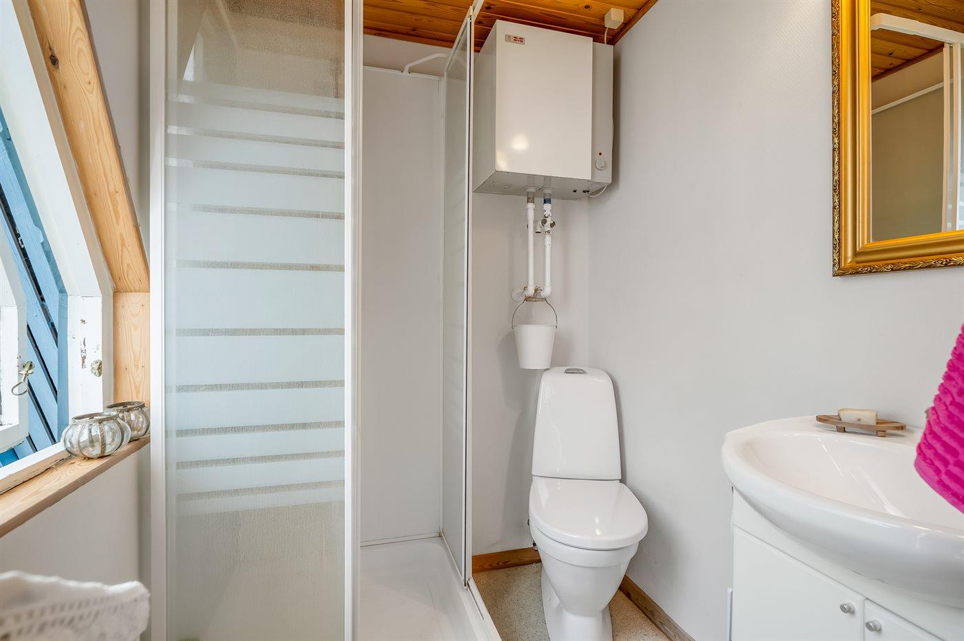 Der er 1 badeværelse med bruseniche og 1 toilet.