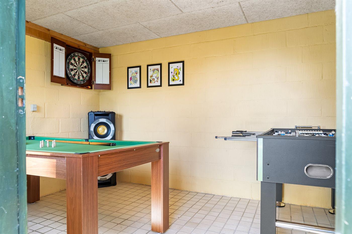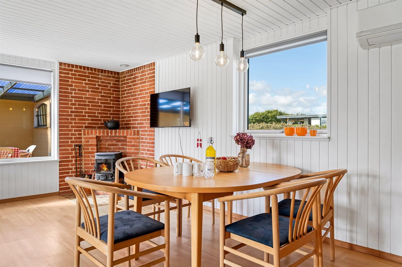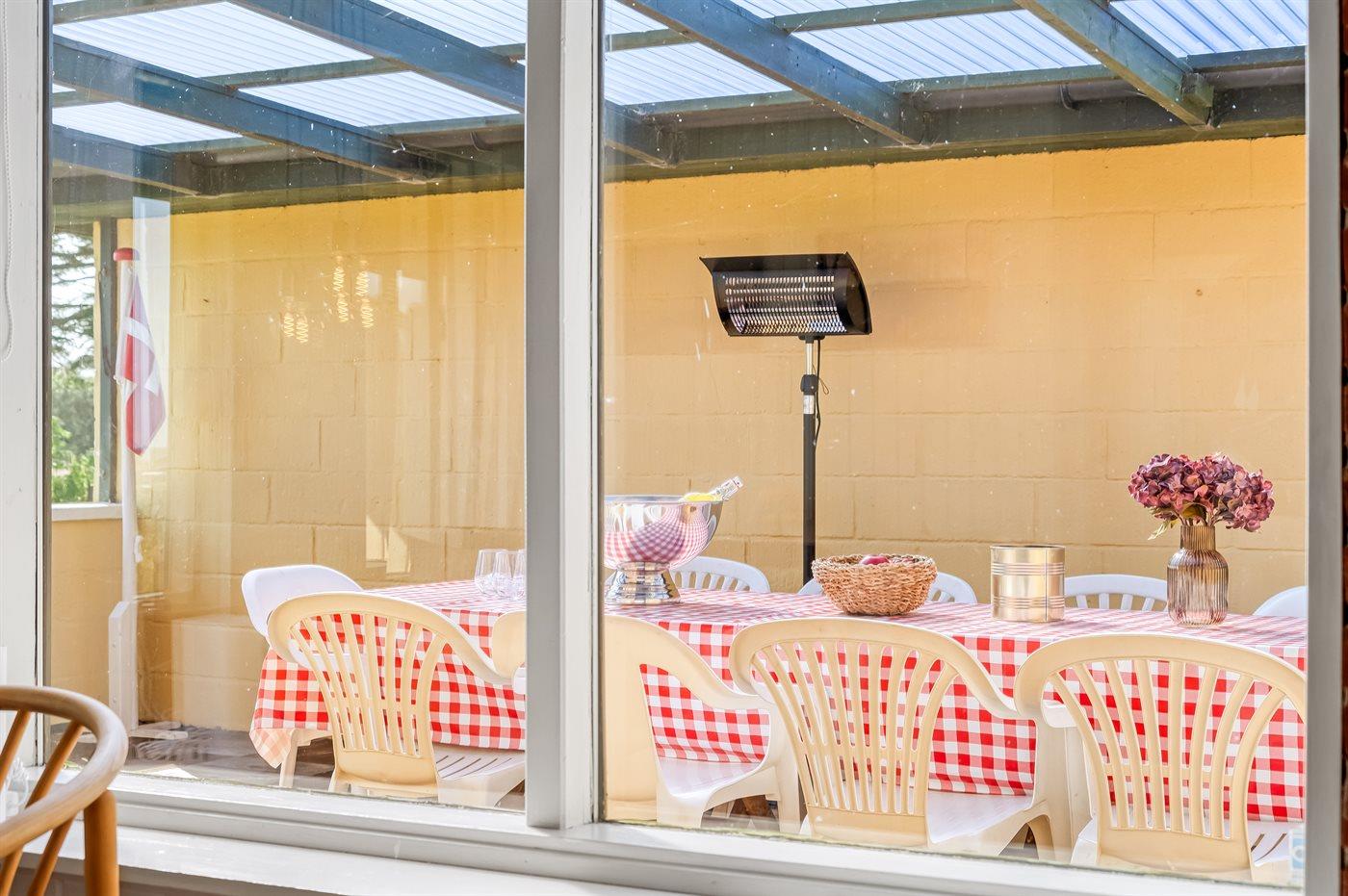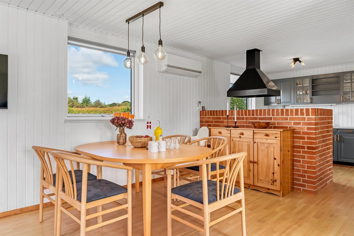 Huset byder på et aktivitetsrum, hvor der er rig mulighed for underholdning for både børn og voksne. Beliggenheden er noget helt særligt – på en stor og naturskøn grund med masser af plads til leg, spil og udeliv. Fra grunden er der et dejligt kig til havet, som giver en rolig og ferieagtig stemning hele dagen.