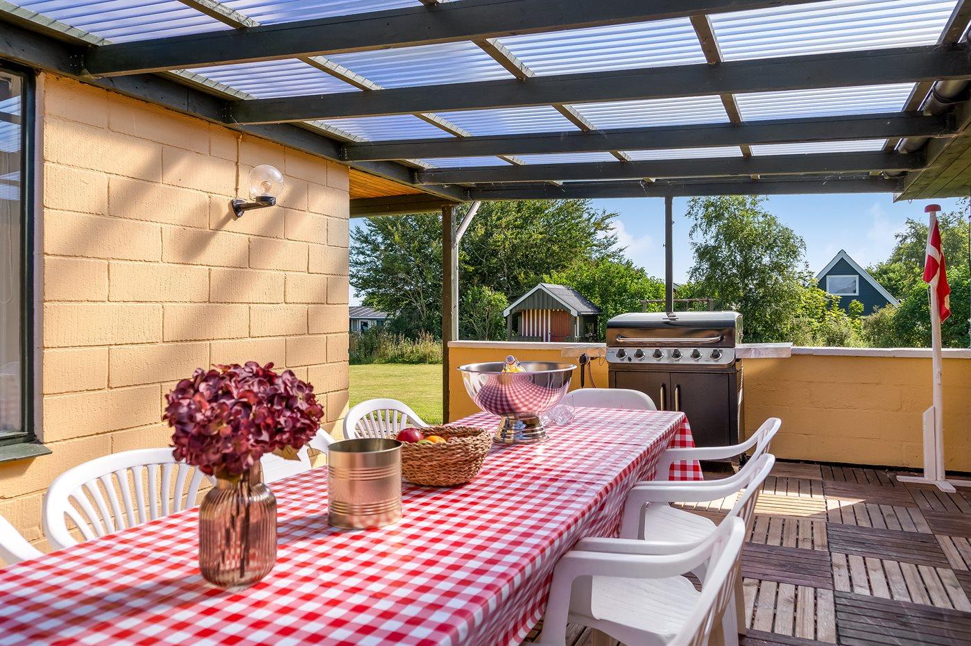 Ferieboligen er beliggende på en 1335 m² stor havegrund. Der er 280 m til havet. Der er 6740 m til fjorden. Nærmeste forretning er beliggende i en afstand af 1350 m. Der er en golfbane i en afstand af 13780 m. Desuden er der 25 m² overdækket terrasse. Til ferieboligen hører åbent terrasseareal. Legehus. Grill til rådighed. Parkering ved ferieboligen.