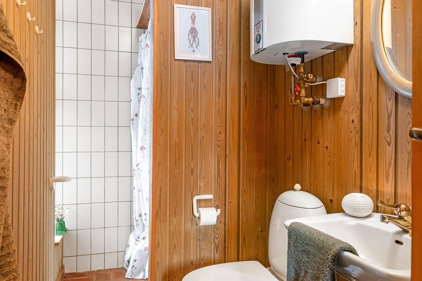 Der er 1 badeværelse med bruseniche og 1 toilet.