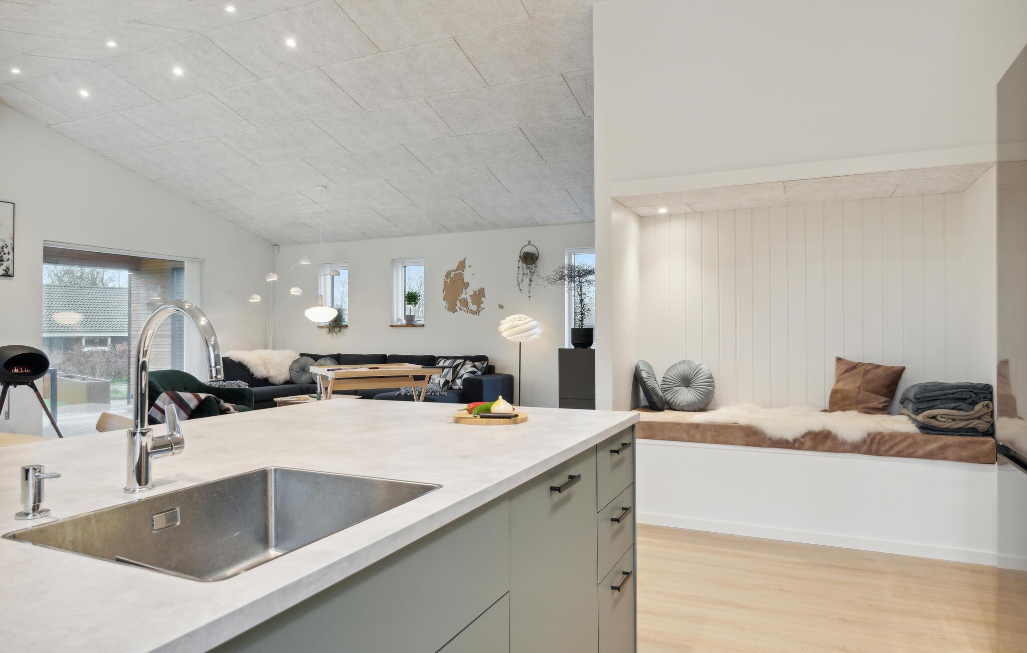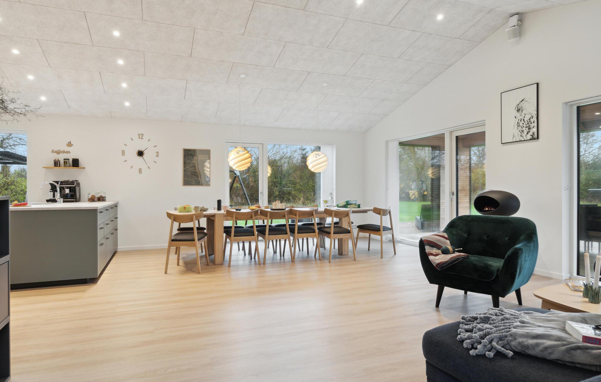 Moderne feriehus i børnevenlige Øster Hurup med wellness og skøn have nær familievenlig sandstrand.
