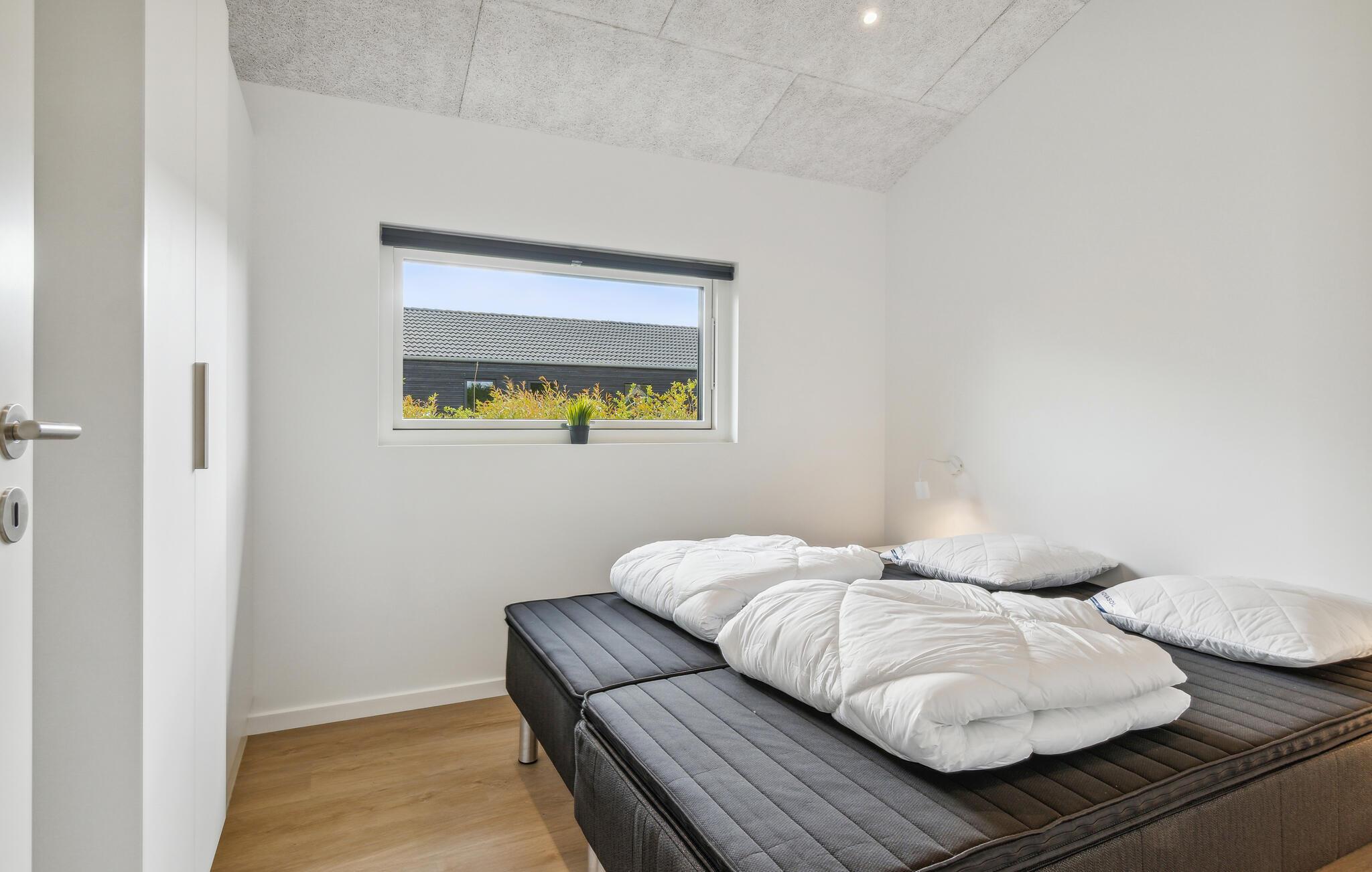 Hyggeligt og lyst sommerhus i Øster Hurup med aktivitetsrum og udendørs spabad nær børnevenlig strand.
