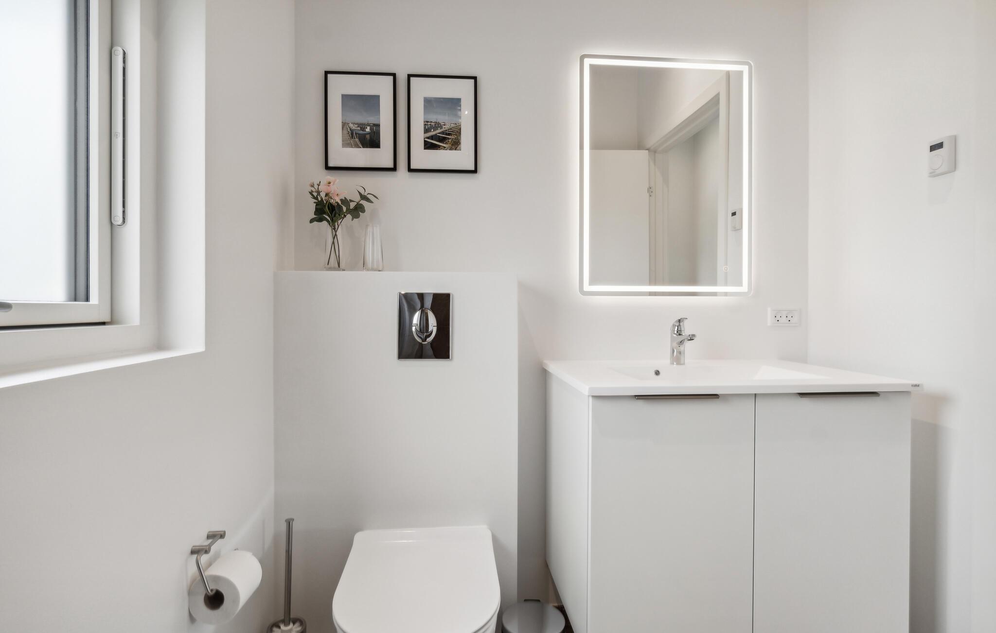 Badeværelse (nr. 1) - WC. Varmt og koldt vand. Bruser
