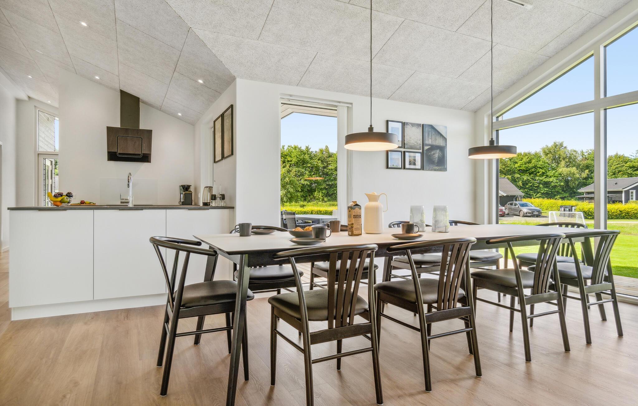 Tæt på den børnevenlige sandstrand i Øster Hurup ligger dette veludstyrede sommerhus, som har plads til den store familie eller to familier, der holder ferie sammen. Huset ligger i fredfyldte omgivelser, så her kan I trække stikket fra hverdagen og nyde alle boligens skønne faciliteter. I køkkenet er der gode rammer til at gøre madlavningen til et hyggeprojekt og senere kan I give jer god tid til at nyde retterne rundt om spisebordet, hvor der er udsigt til den grønne have. Der er også et aktivitetsrum, hvor I kan hygge jer med alt fra bordtennis til bordfodbold og billard, så I kommer næppe til at kede jer.
