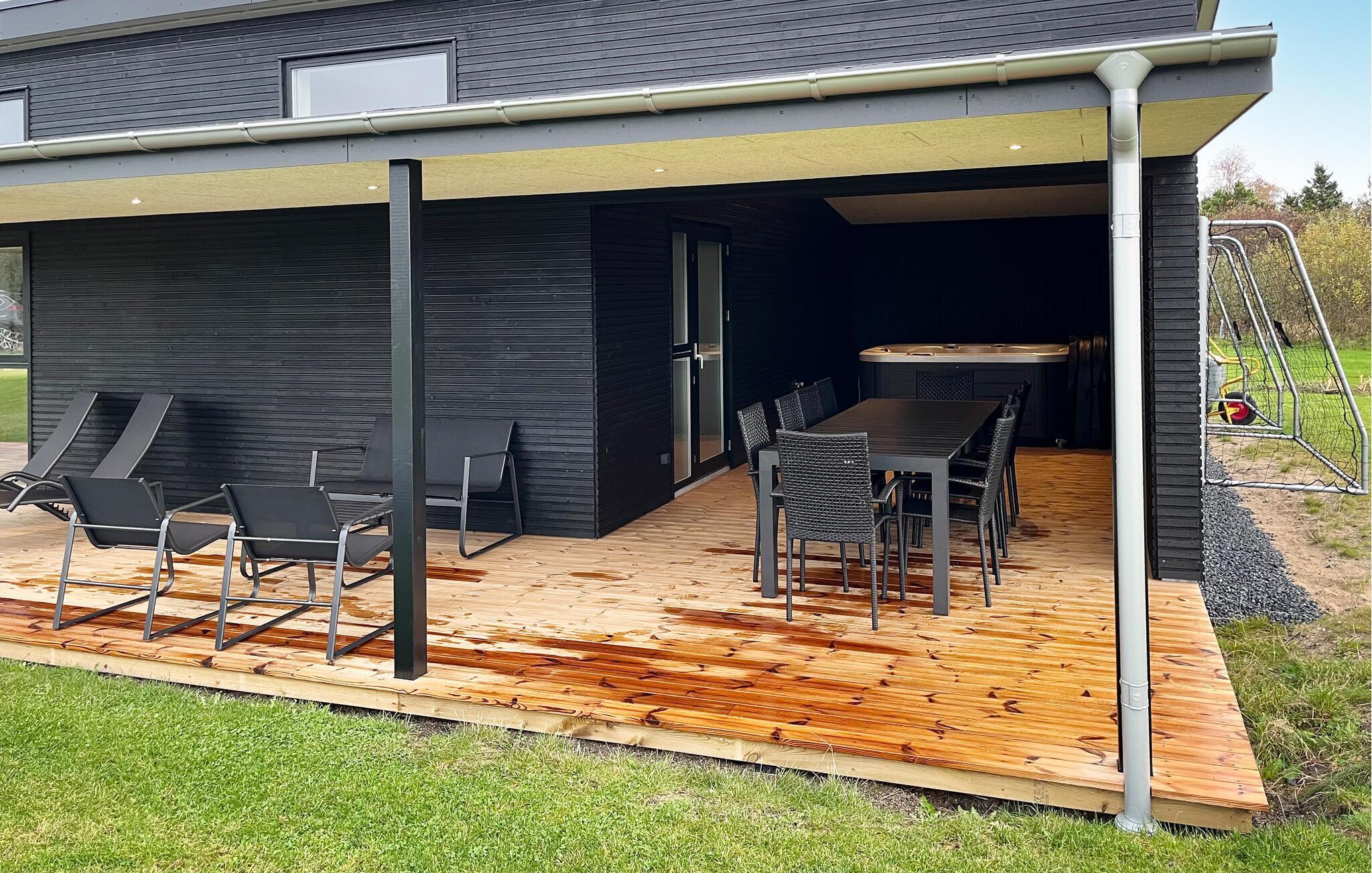 Begynd dagene med en friskbrygget kaffe, så snart solen begynder at skinne. Nyd en afslappet morgenmad på terrassen, hvor I altid er i læ for vind og vejr. Når I trænger til at slappe af, kan I bruge spabadet og til dem, der foretrækker noget mere aktivt, kan I spille fodbold med børnene. Om aftenen kan I tænde op i grillen og nyde dagens sidste soltimer.