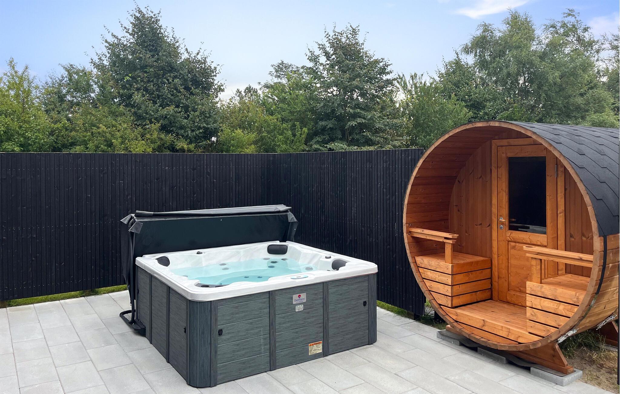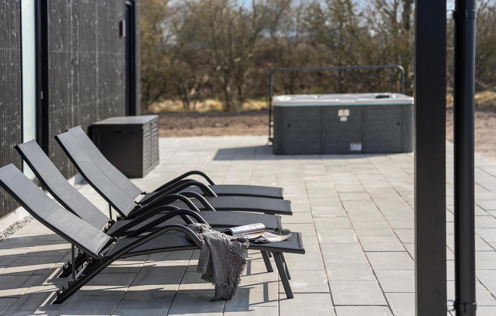 Udenfor inviterer den store terrasse alle til at nyde en stund i solen. Læn jer tilbage i spabadet eller med en god bog på liggestolene.