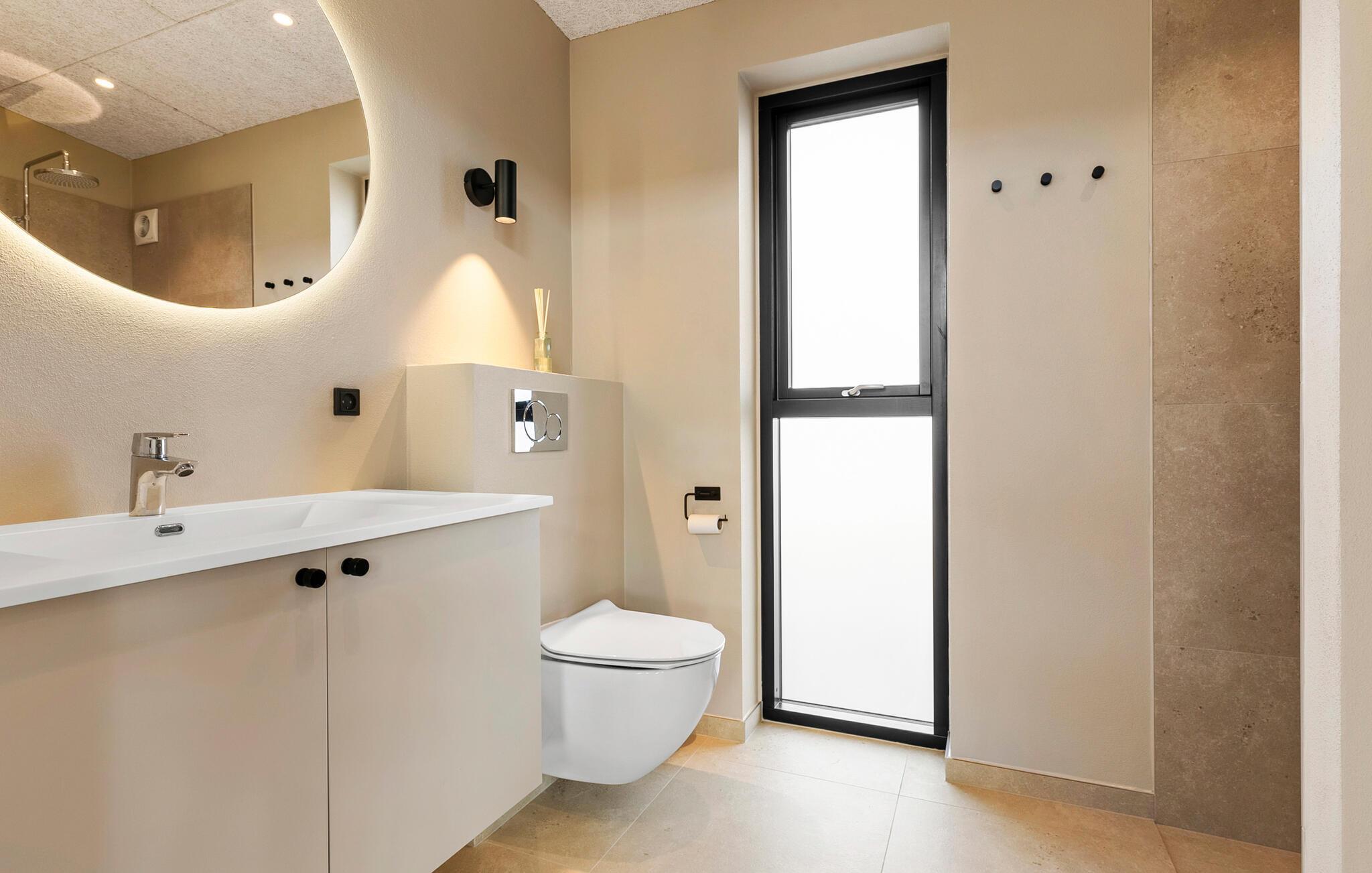 Der er lagt op til nogle fredfyldte feriedage på den nordjyske østkyst. Her kan I få jeres base i dette skønne hus, som giver jer de perfekte rammer til den store familie eller turen med vennerne. Efter dagens oplevelser kan I samles i den helt særlige opholdsstue, som får alle til at sænke skuldrene og koncentrere sig om at have det rart. Dæk op til en hyggelig familiemiddag eller find sammen om en god film på fjernsynet. Morgensolen lyser rummet op gennem de brede vinduer. Trænger I til lidt velvære efter dagens eventyr, har huset også en sauna.