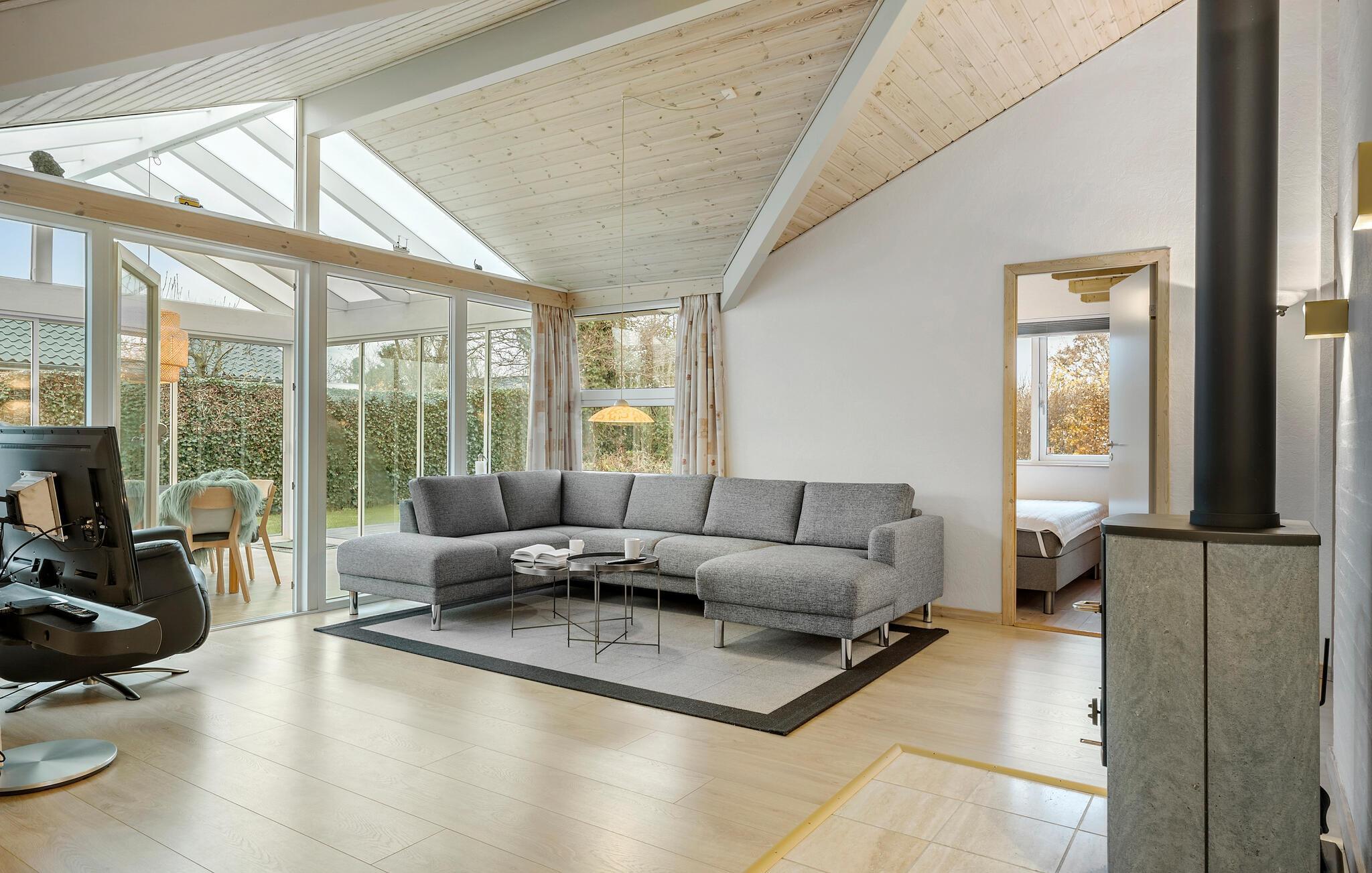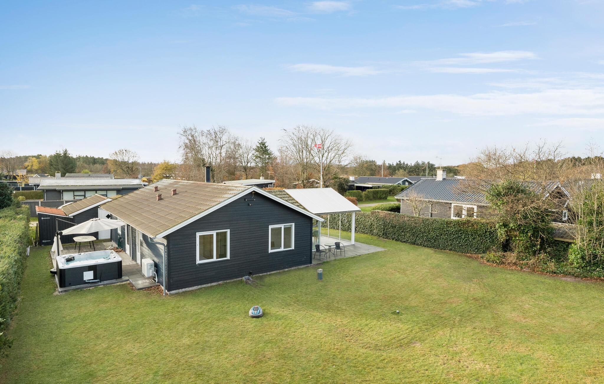 Hyggeligt feriehus i Øster Hurup med spabad, brændeovn og tæt på børnevenlig strand.