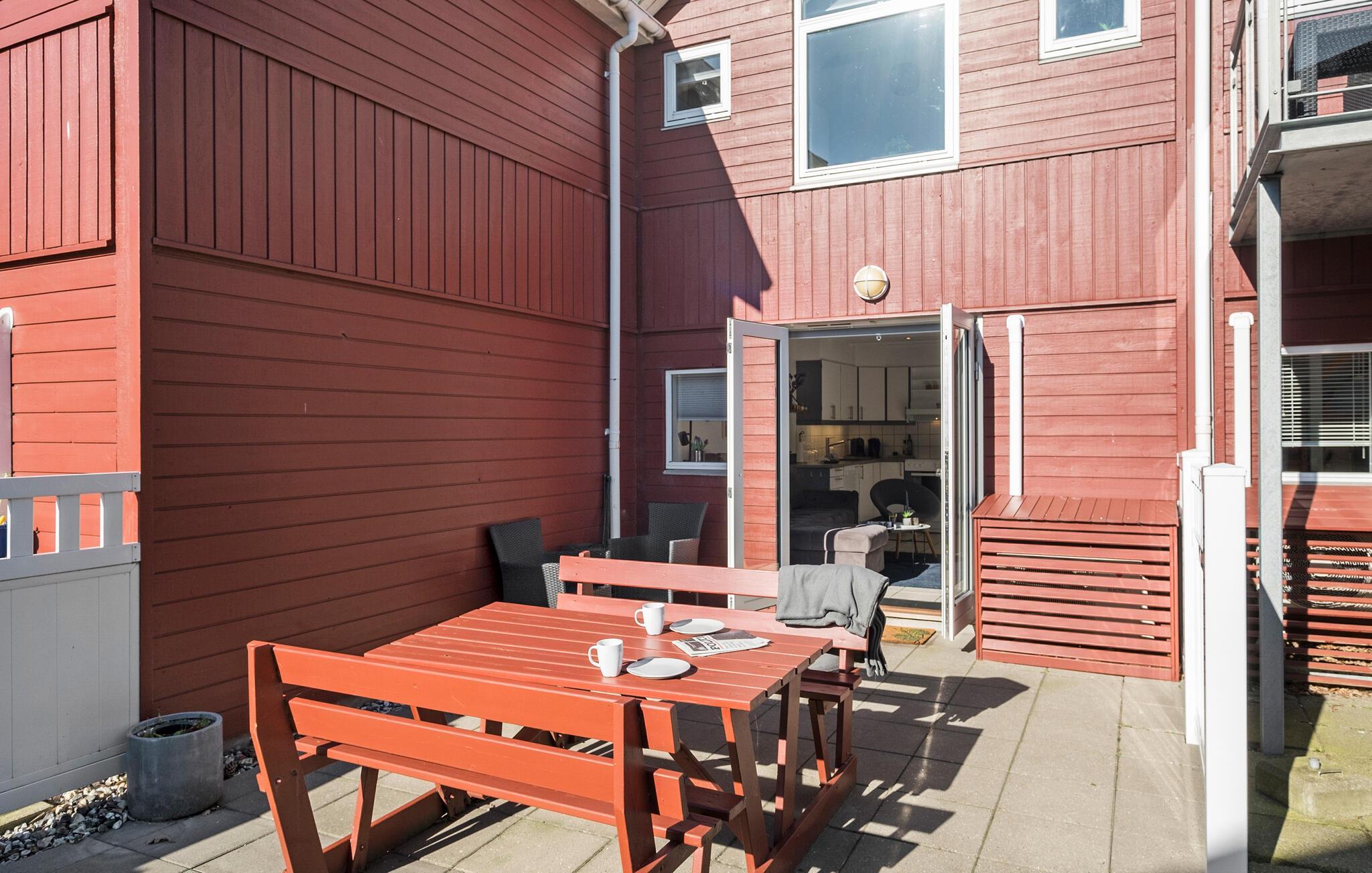 Tag morgenkaffen med ud på terrassen og begynd dagen i ro og mag. Om aftenen er det et oplagt sted at svinge benene op og slappe af i den friske luft. Her tilbringer I jeres ferie i en rolig rækkehusbebyggelse med kort afstand til legeplads og badeland.